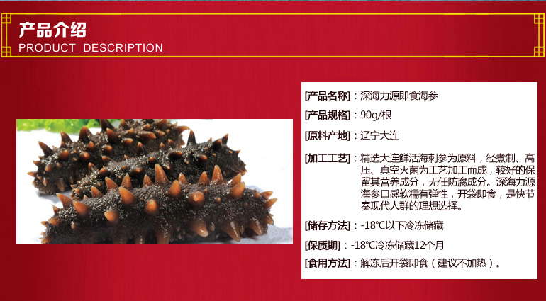 您所在的位置:首页 >  >  即食海参 >  冰冻装 >  深海力源大连海参 即食海参 90g/根 单根价格 口感好有营养