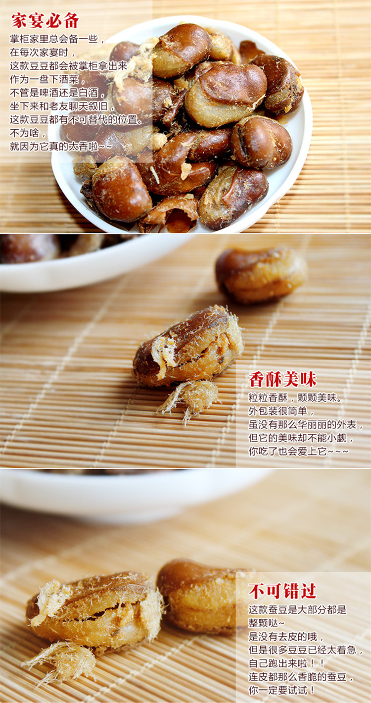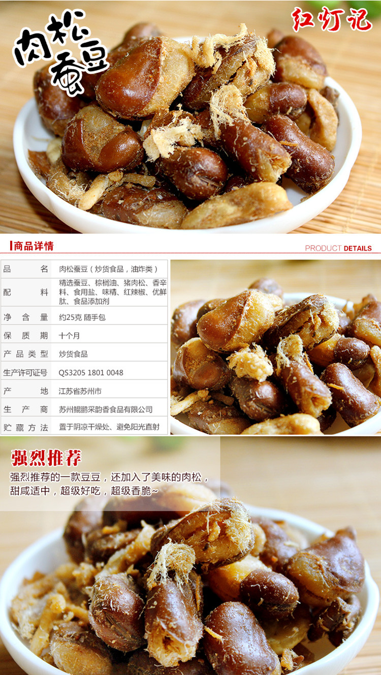 您所在的位置:首页 > 休闲食品系列 >  小吃大艺 >  风味小吃 >  红灯记肉松蚕豆500g 兰花豆香酥松脆小包 炒货零食品包邮特价