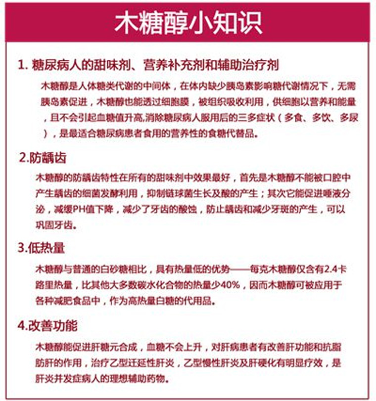 | 食品添加剂: | 麦芽糖醇、木糖醇、等 |