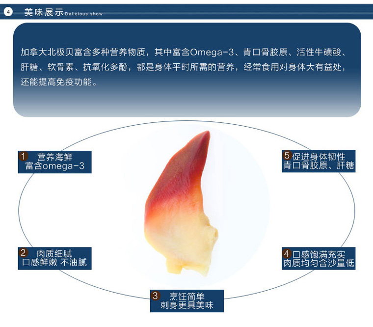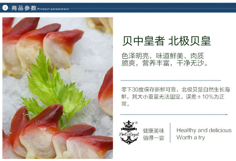 | 生产许可证编号: | QS110811010009 | 商品条形码: | 北极贝皇250g |