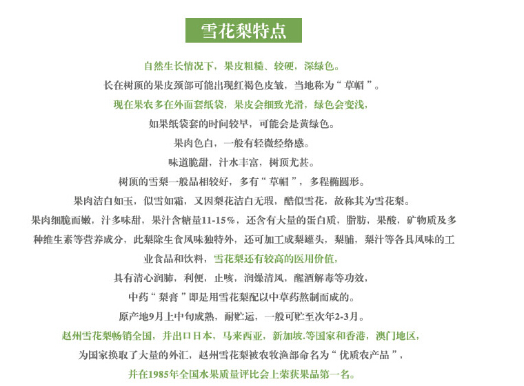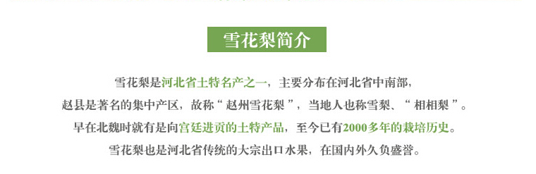 您所在的位置:首页 > 新鲜水果系列 >  基地直供 >  梨类 >  赵县雪花梨 水果 4.5斤