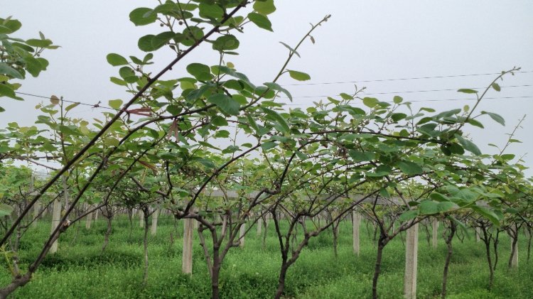 我们在这片土地里生活了上百年,打从爷爷的爷爷就在这片肥沃的渭河平原上耕种,有了石头河水库泉水的浇灌,猕猴桃树长的格外茂盛。(远处的山为秦岭山脉)