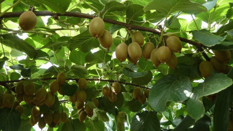 地里的草能保持土壤水分,和猕猴桃树共生的更好,果子已经挂满枝头,沉甸甸全是收获
