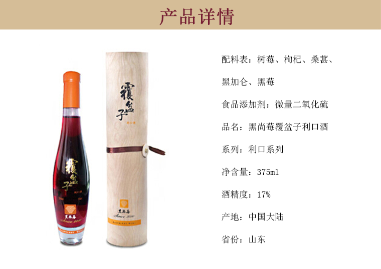 【黑尚莓】树莓酒 利口酒 美口17% 375ml