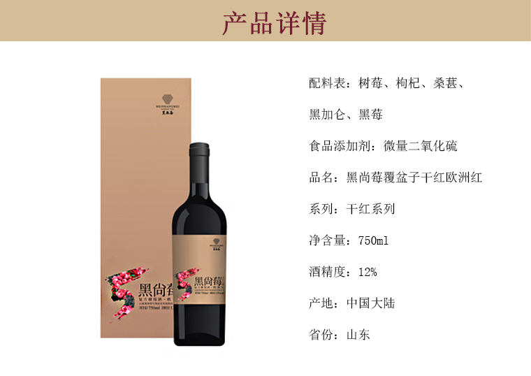 【黑尚莓】树莓酒 干红系列 欧洲红12%750ml