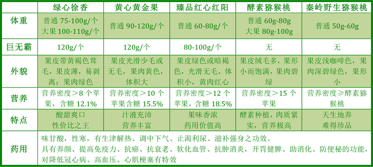 我们农场的猕猴桃对比表