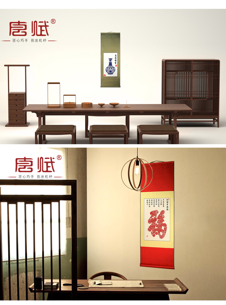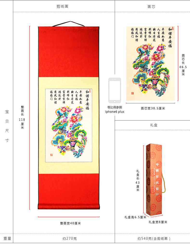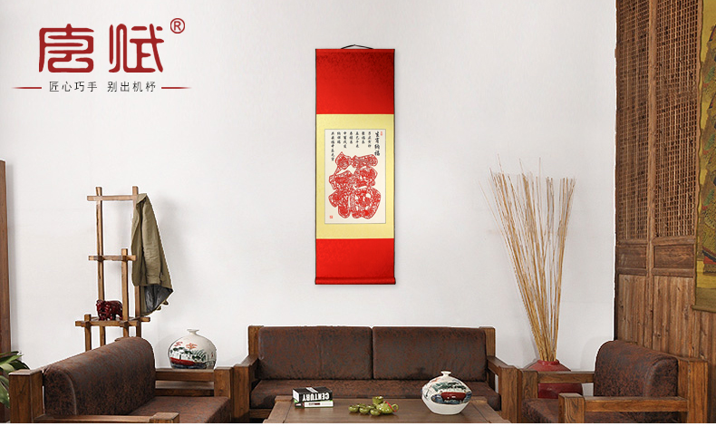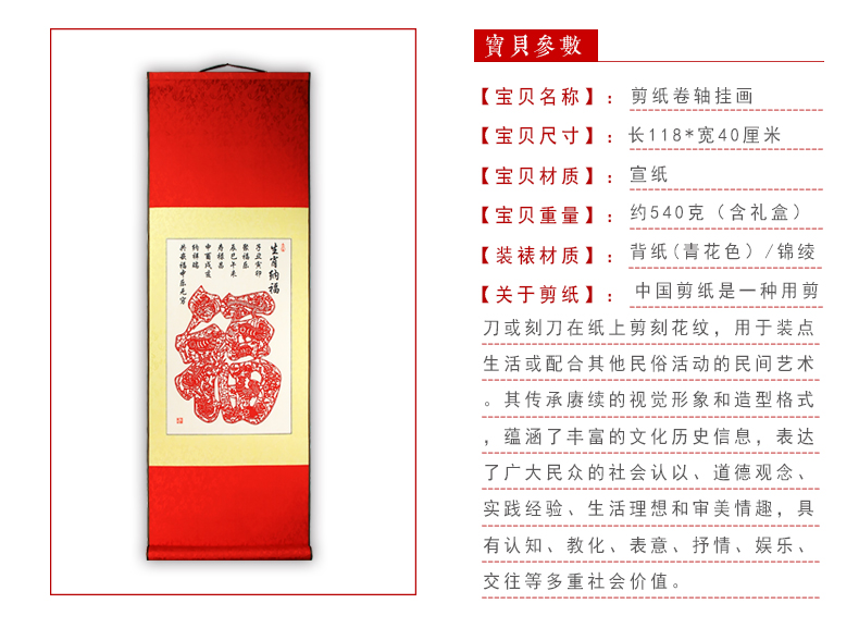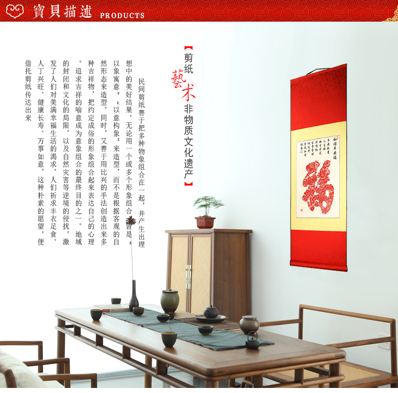 蔚县手工剪纸画 丝绸卷轴装饰挂画 中国特色礼品出国送老外工艺品