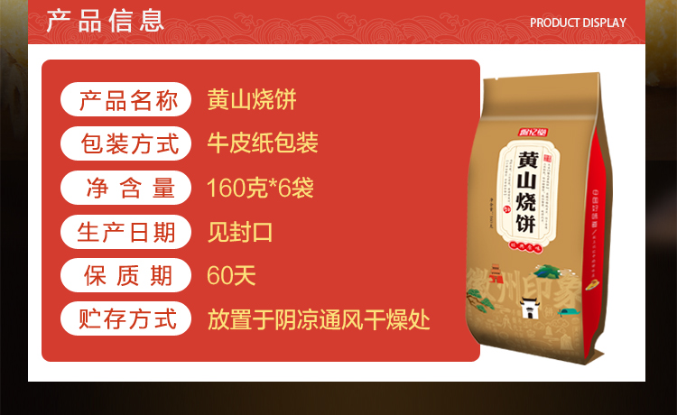口味: 6袋原味6袋辣味3原3辣 特产品类: 黄山烧饼