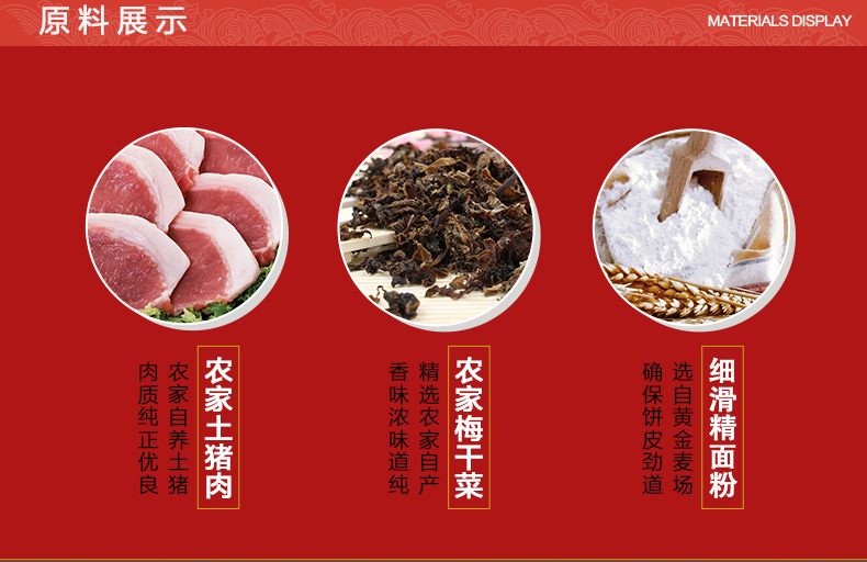 配料表: 精面粉、冷鲜猪肉、梅干菜、菜籽油、白砂糖、味精、辣椒、食品添加剂(碳酸氢钠) 食品添加剂: 碳酸氢钠