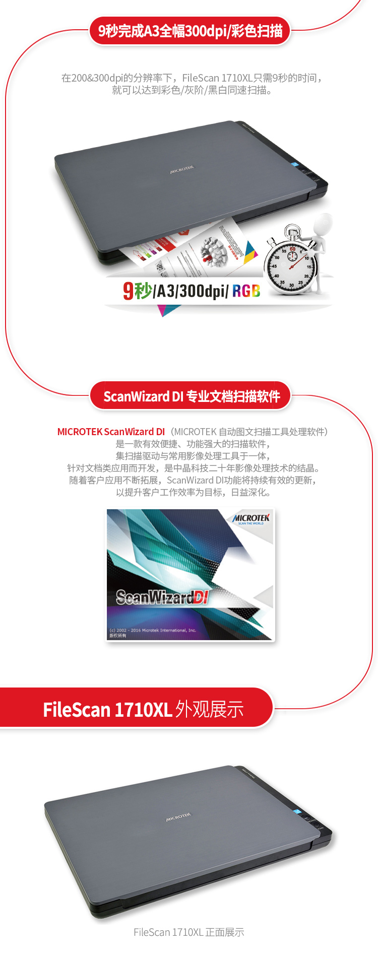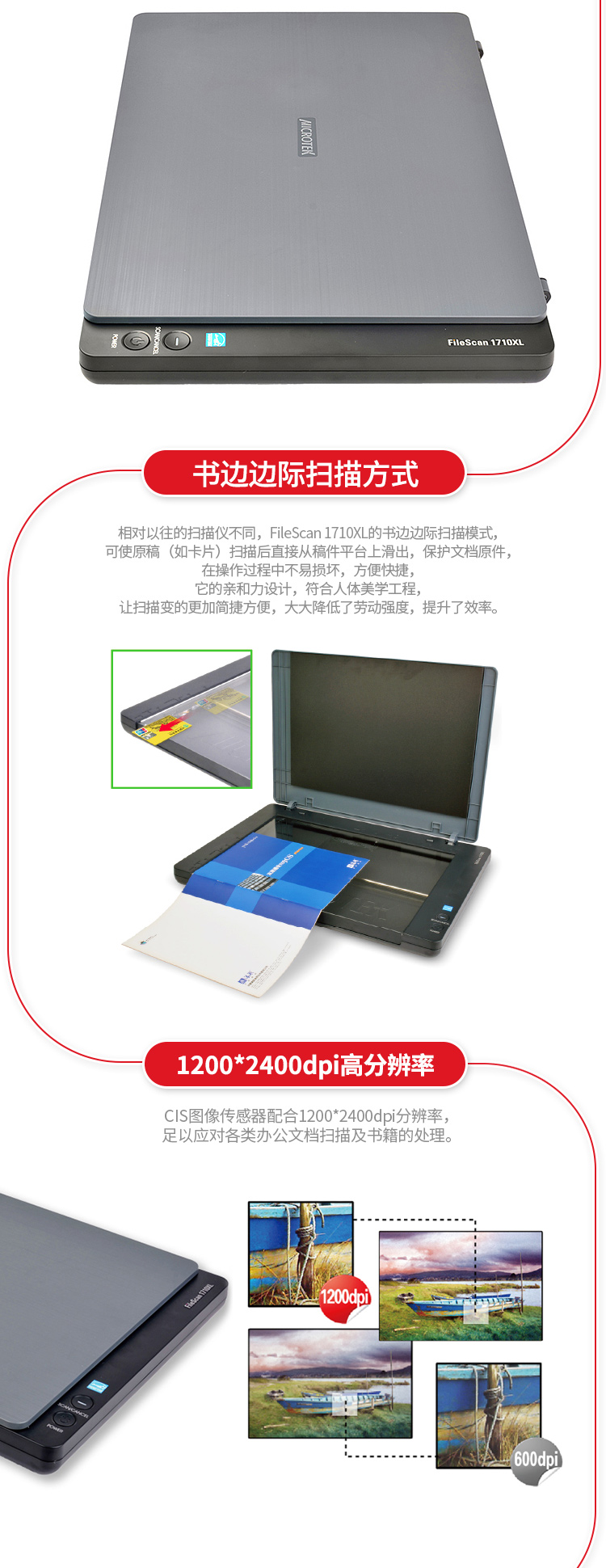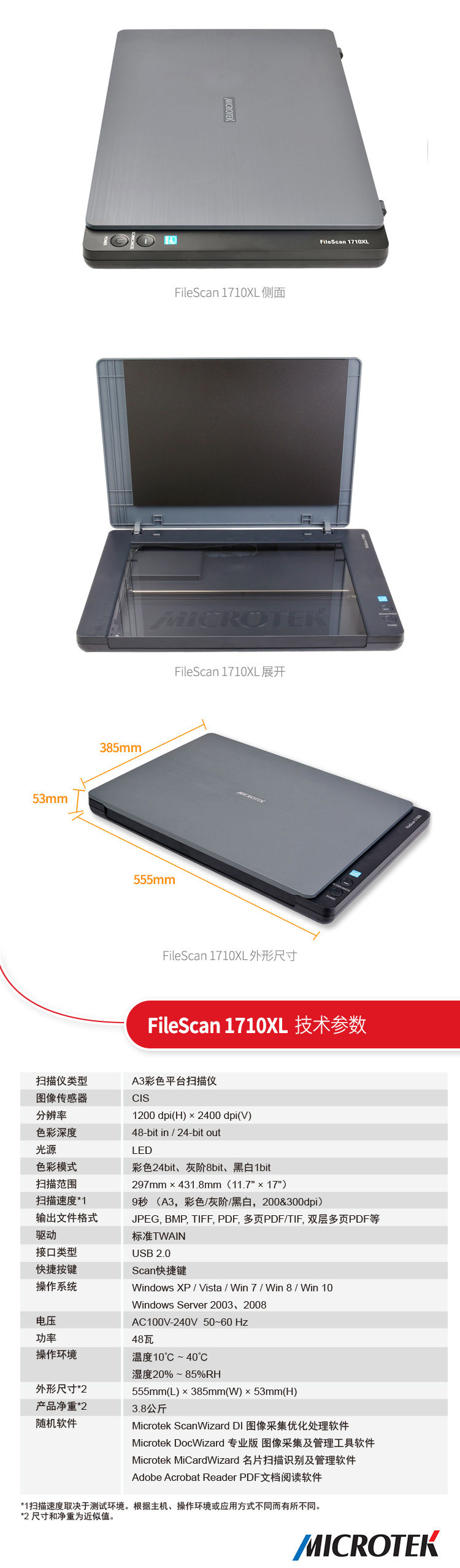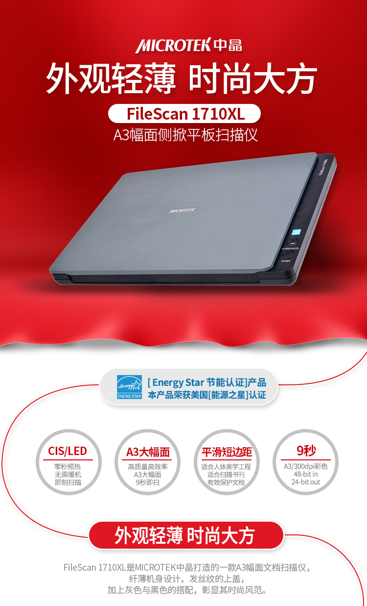 MICROTEK FileScan 1710XL 中晶平板式A3彩色高速扫描仪书籍办公家用合同照片