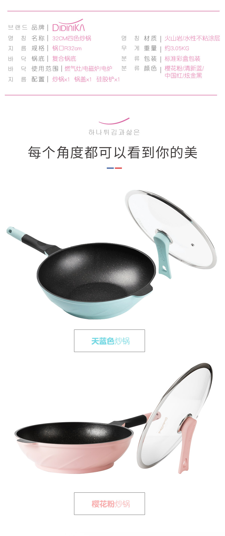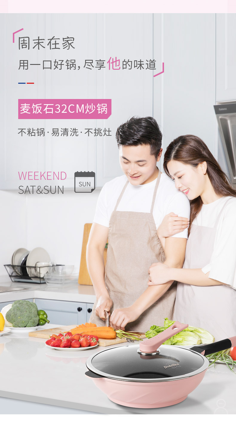 韩国didinika麦饭石炒锅32CM炒锅蓝