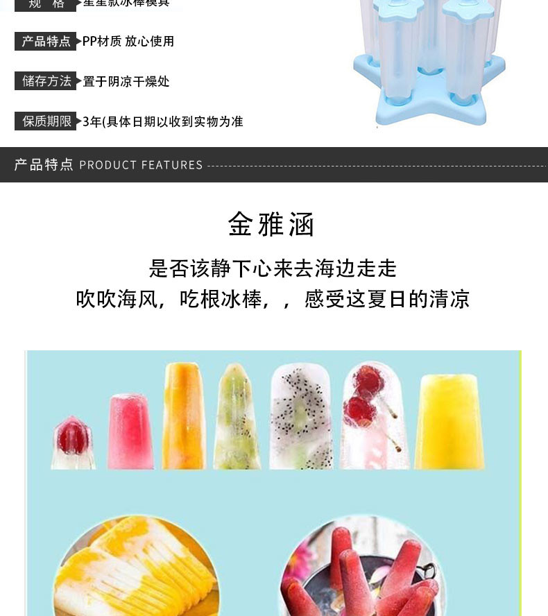 【颜色随机】金雅涵 雪糕模具家用冰淇淋模具 6个装 星星款