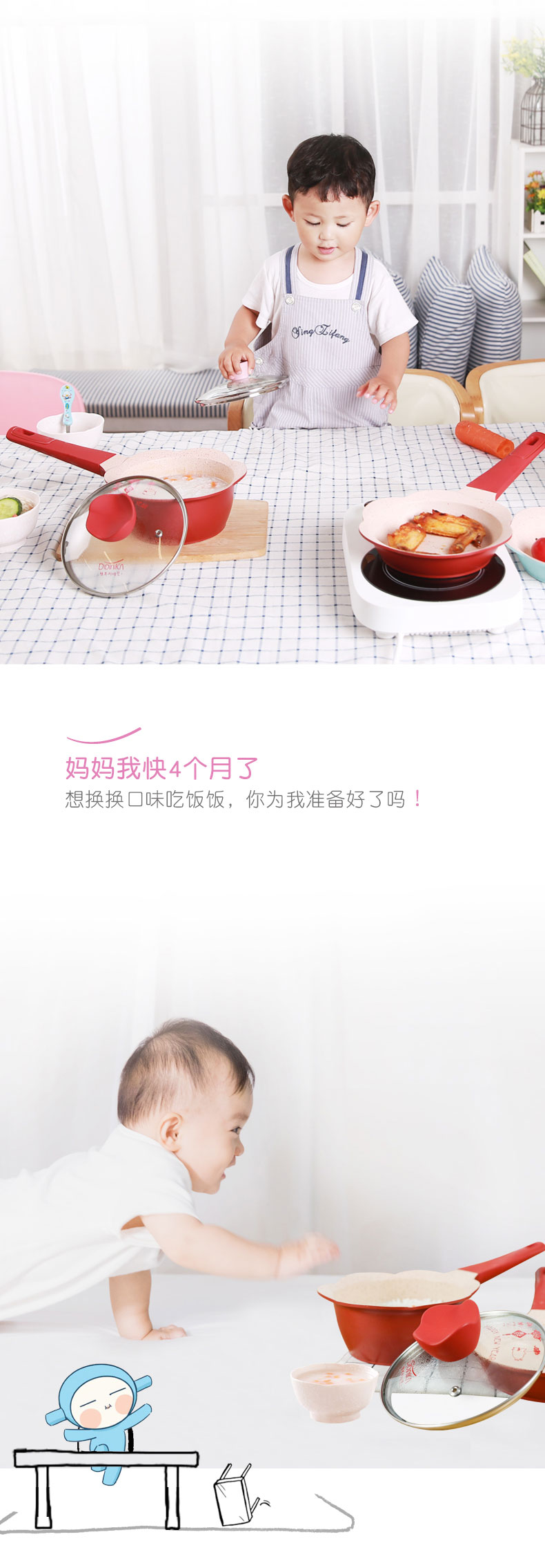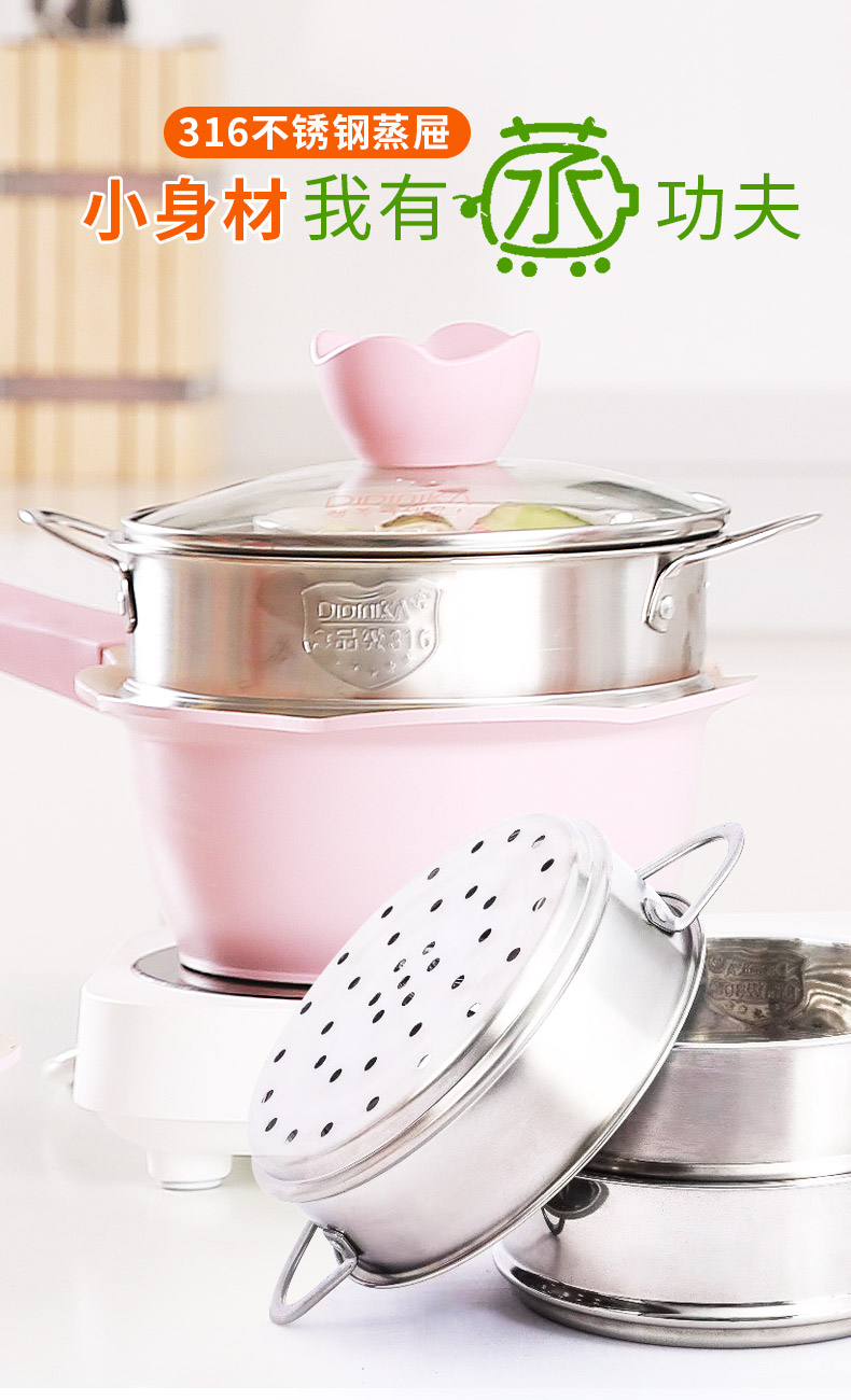 韩国didinika辅食锅花瓣辅食锅蓝+蒸屉16CM