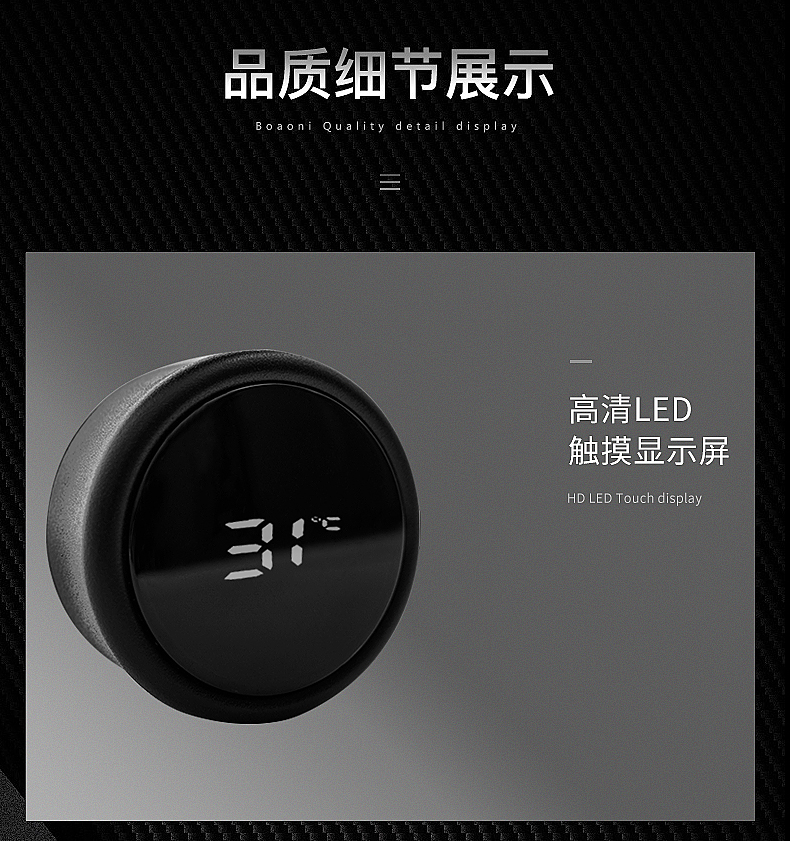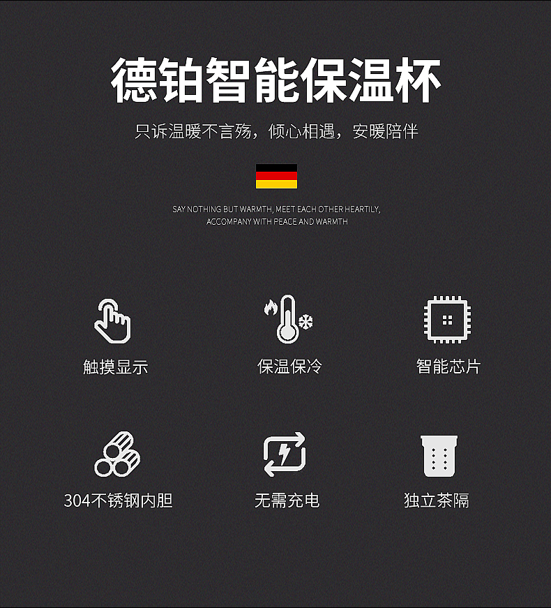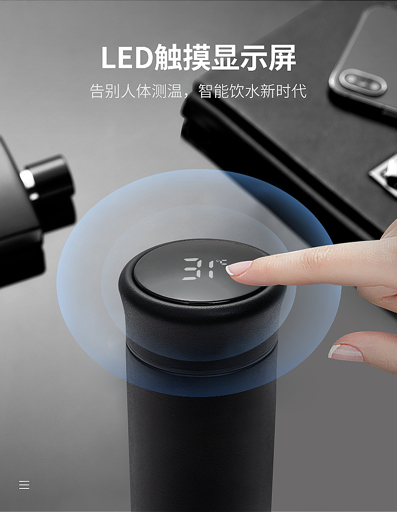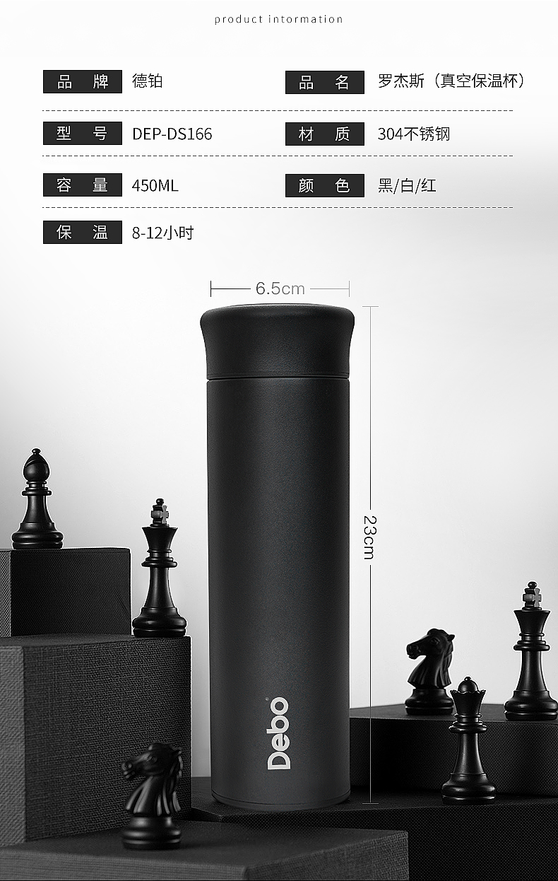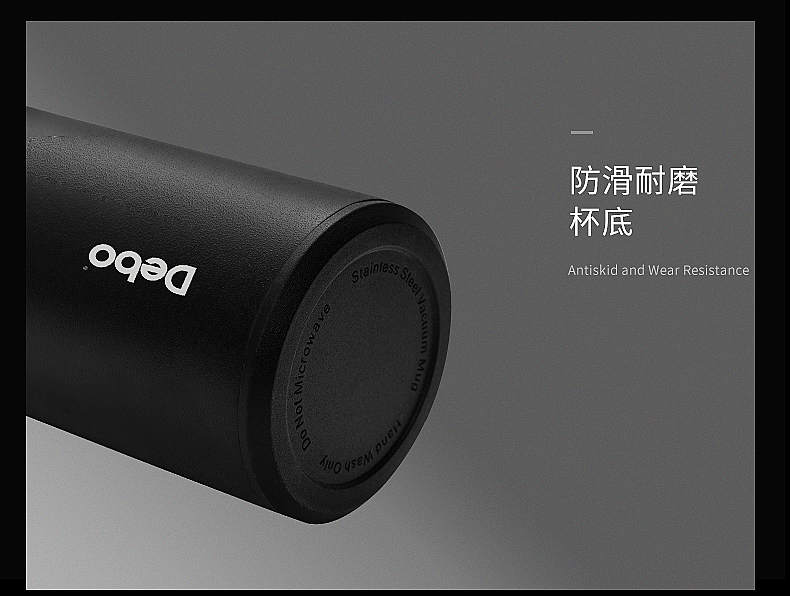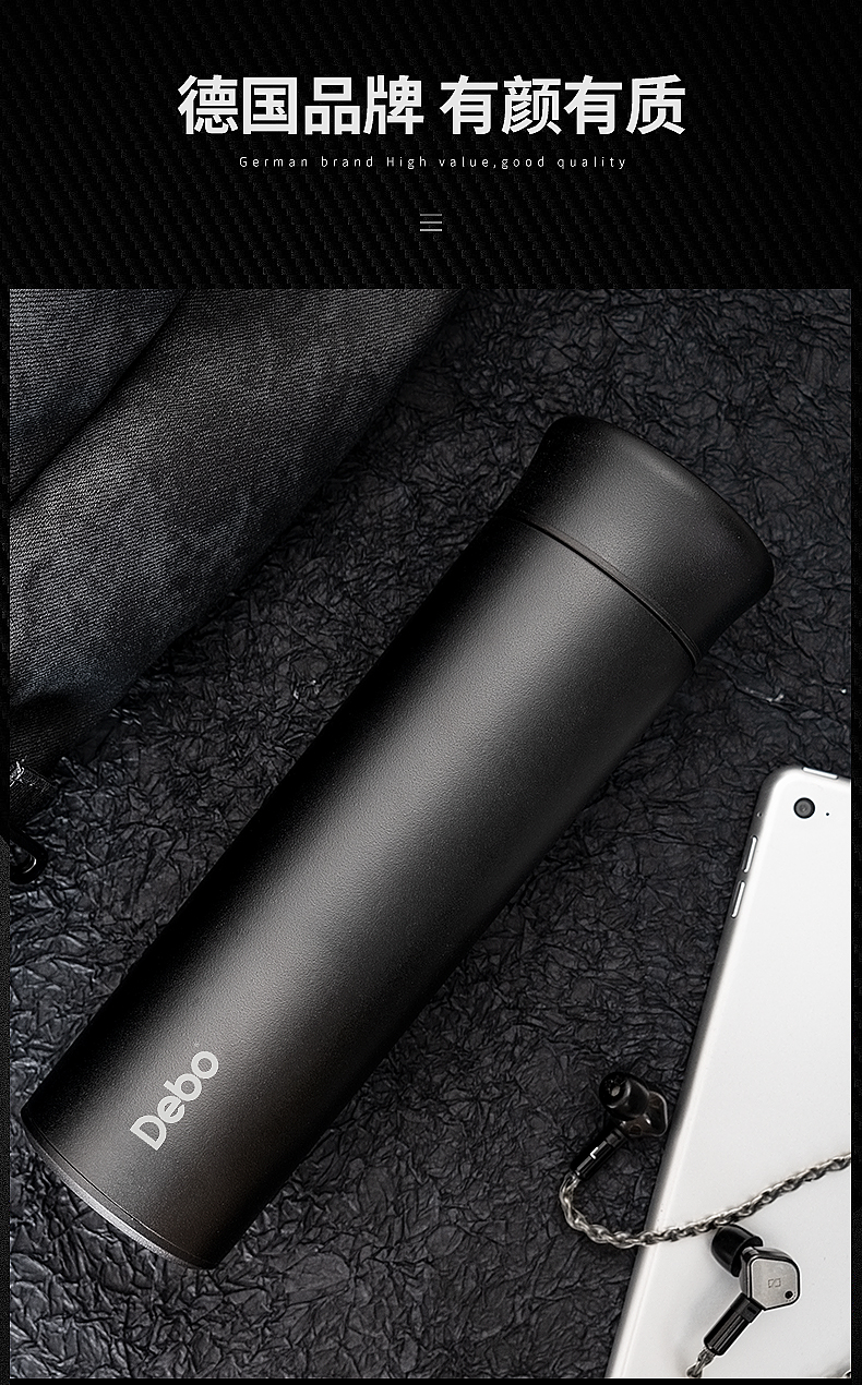 德国Debo德铂 罗杰斯智能测温保温杯男女便携真空不锈钢水杯子学生便携茶杯 黑色