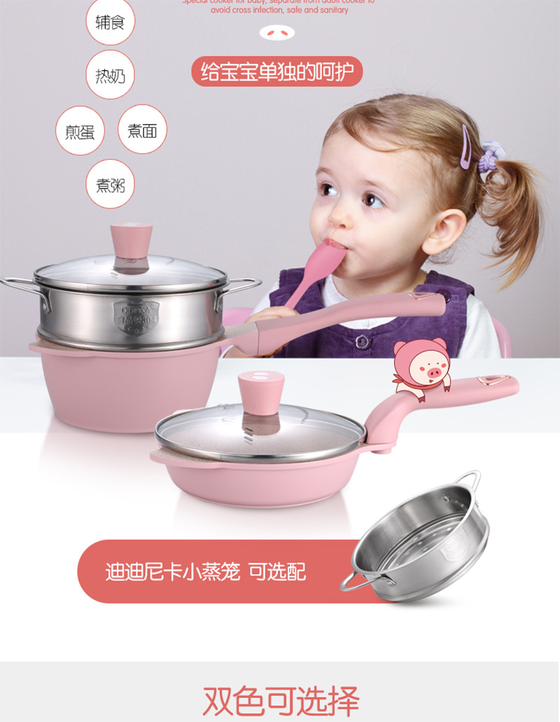 韩国didinika辅食锅\小猪辅食锅蓝+蒸屉16CM
