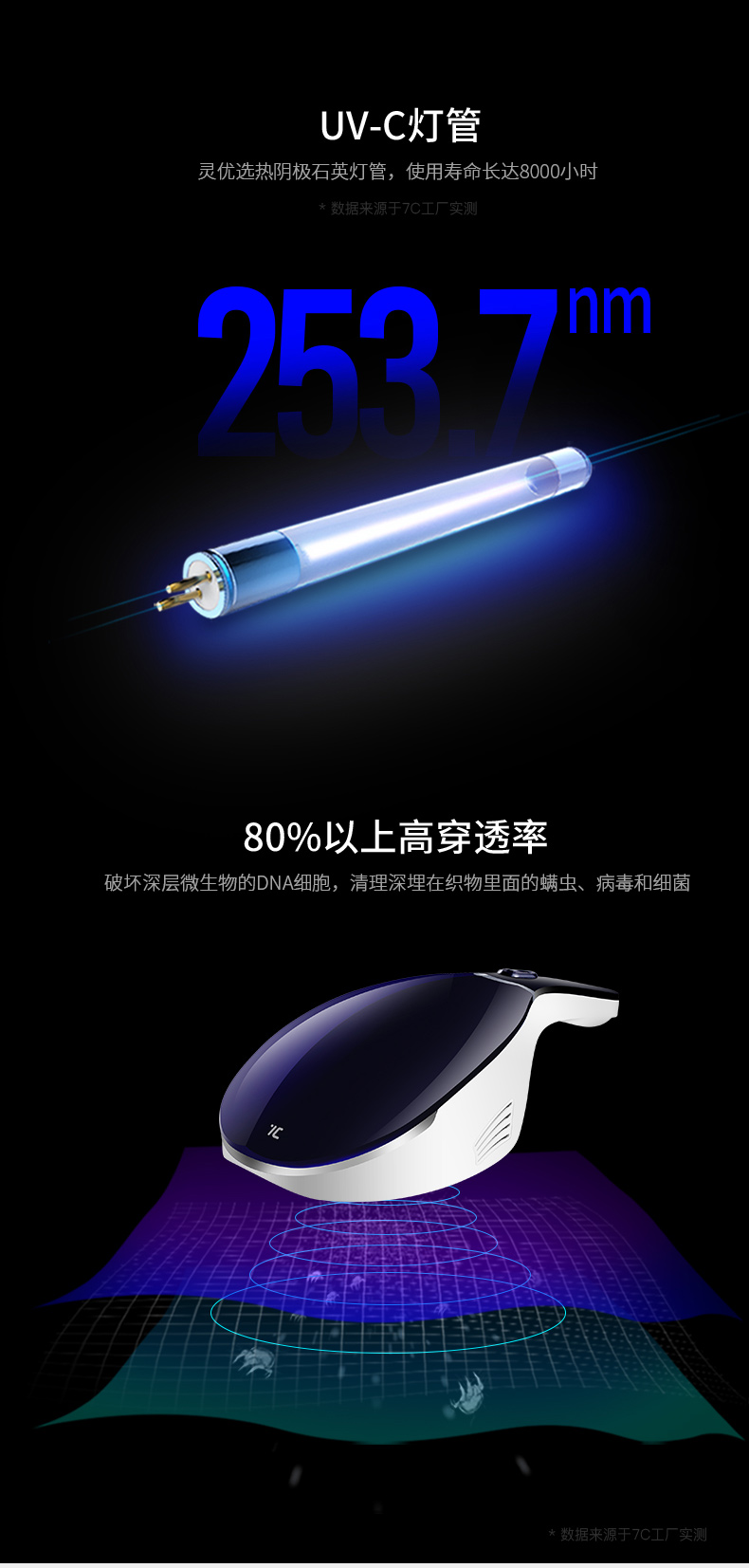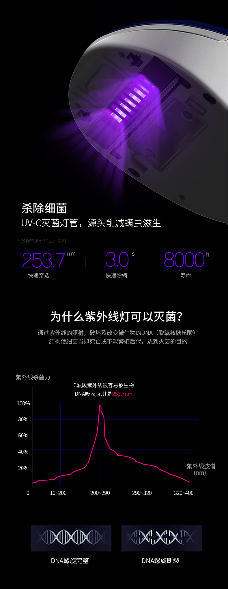 香港七西除螨仪家用床上紫外线灭菌除螨小型吸尘器带热风除螨机C2宝蓝色