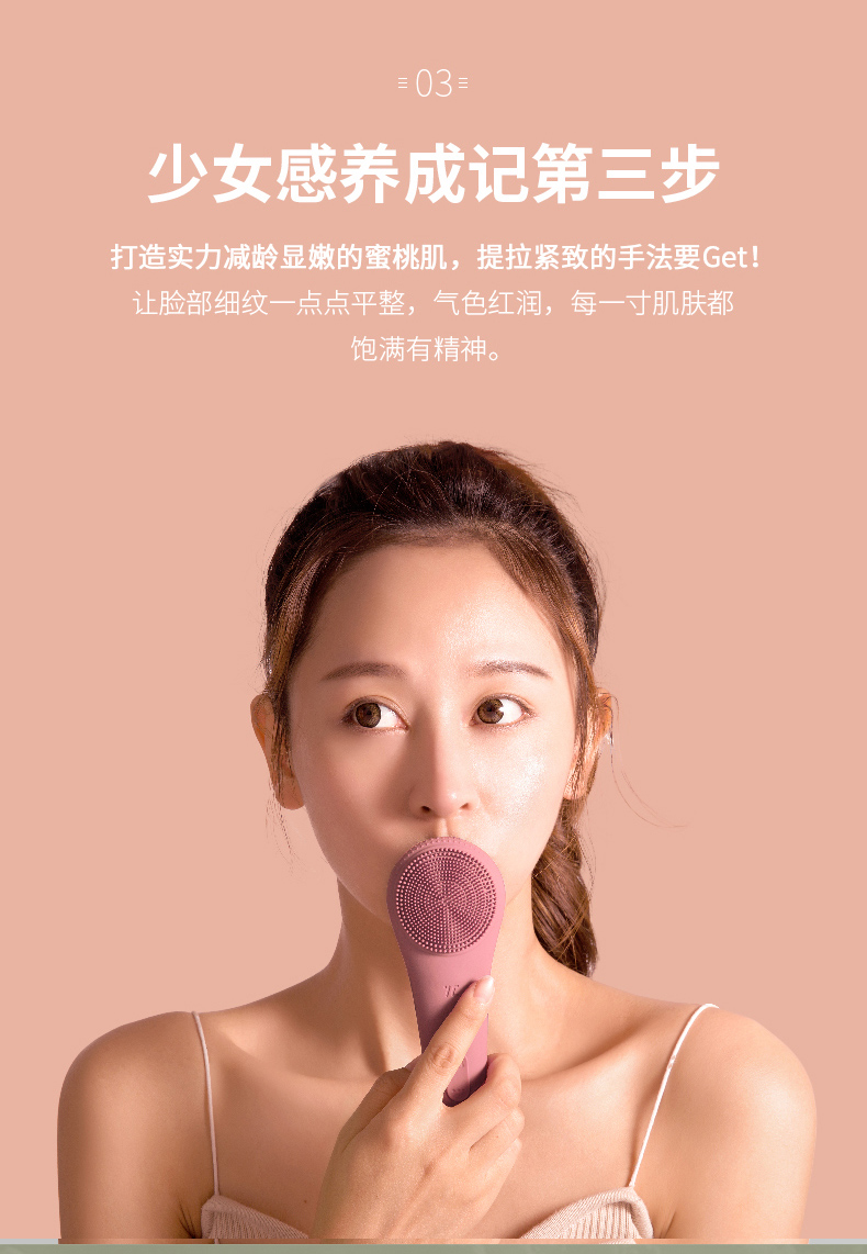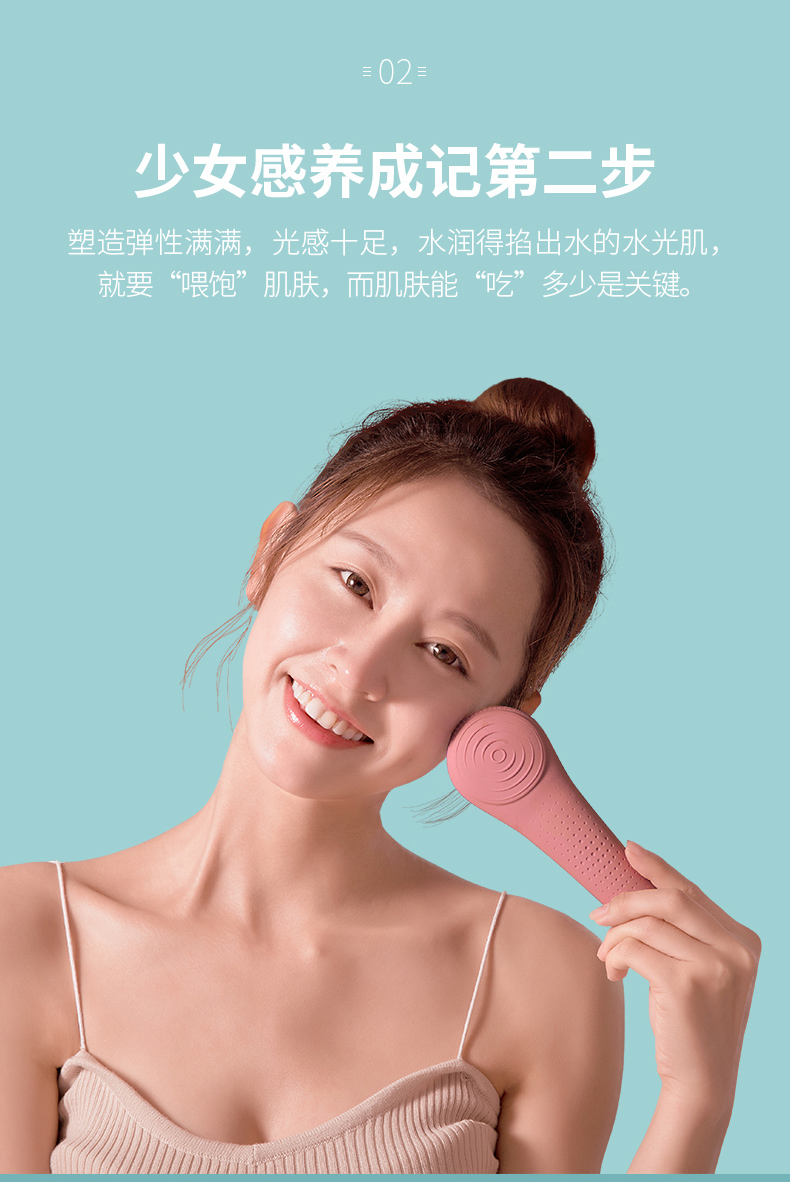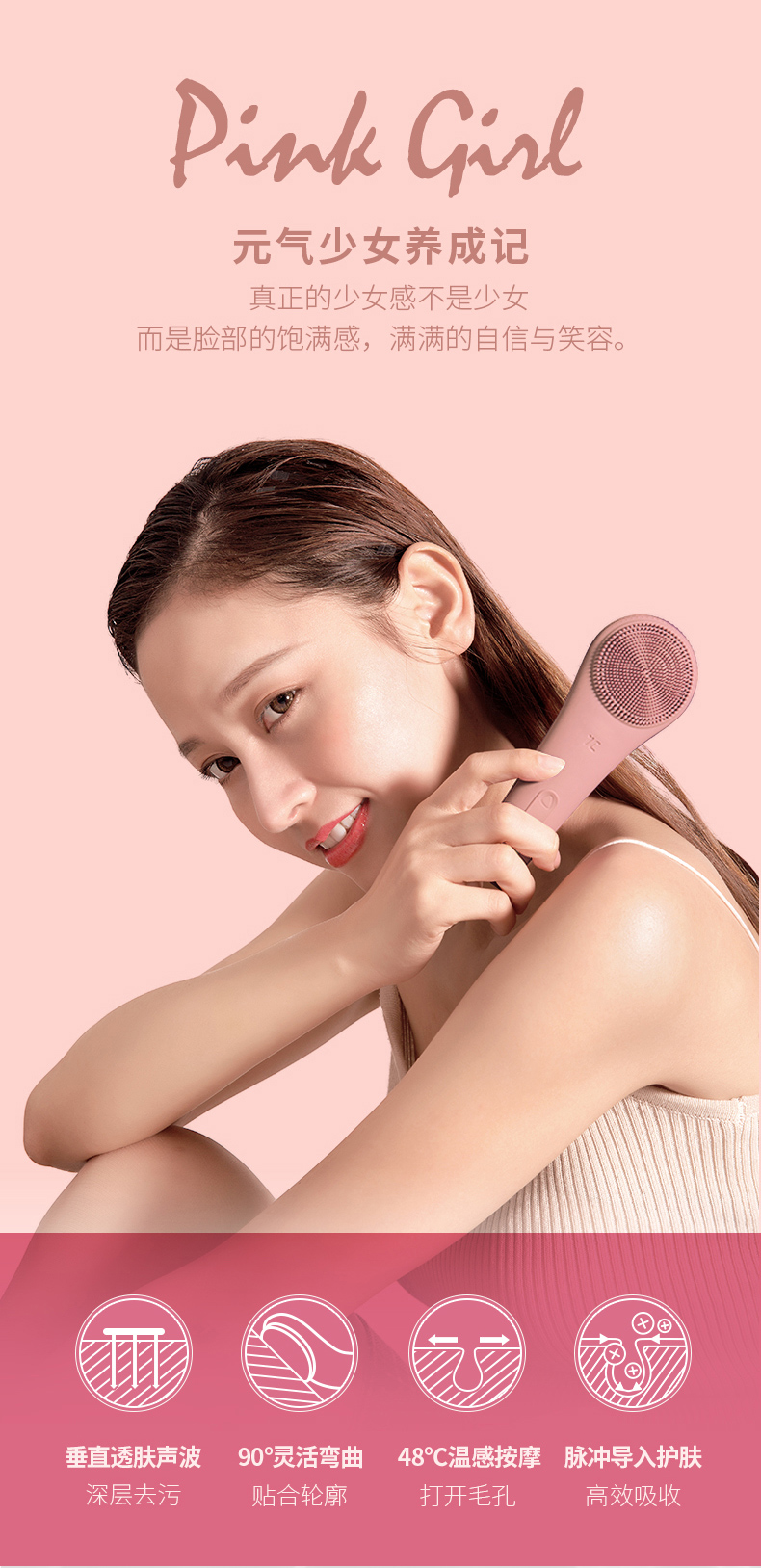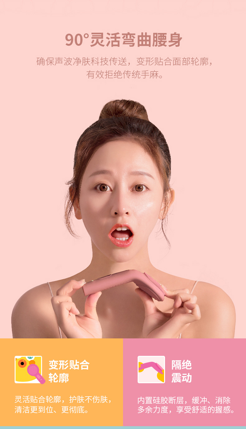 香港七西波板糖洁面仪 声波 温和清洁温热导入 90°弯曲完全贴合X1粉色