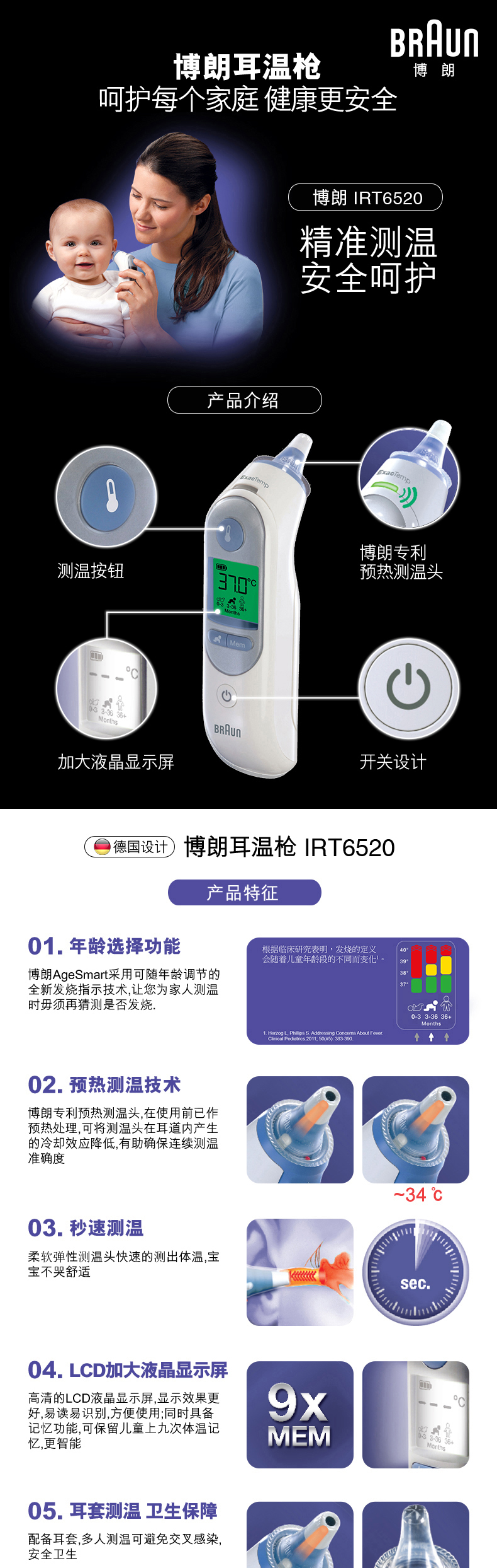 德国Braun博朗婴儿耳温枪 IRT6520(外包装不良,里面完好,2年质保)介意者慎拍
