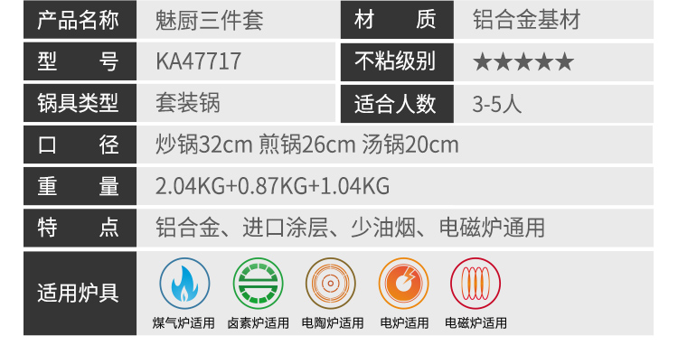 中国炊大皇(COOKER KING)魅厨三件套KA47717 炒锅32cm+煎锅26cm+汤锅20cm