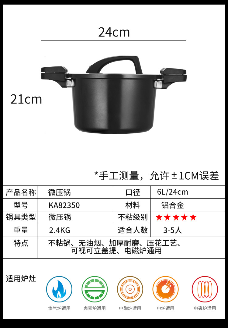 中国炊大皇(COOKER KING)微压锅KA82350 6L