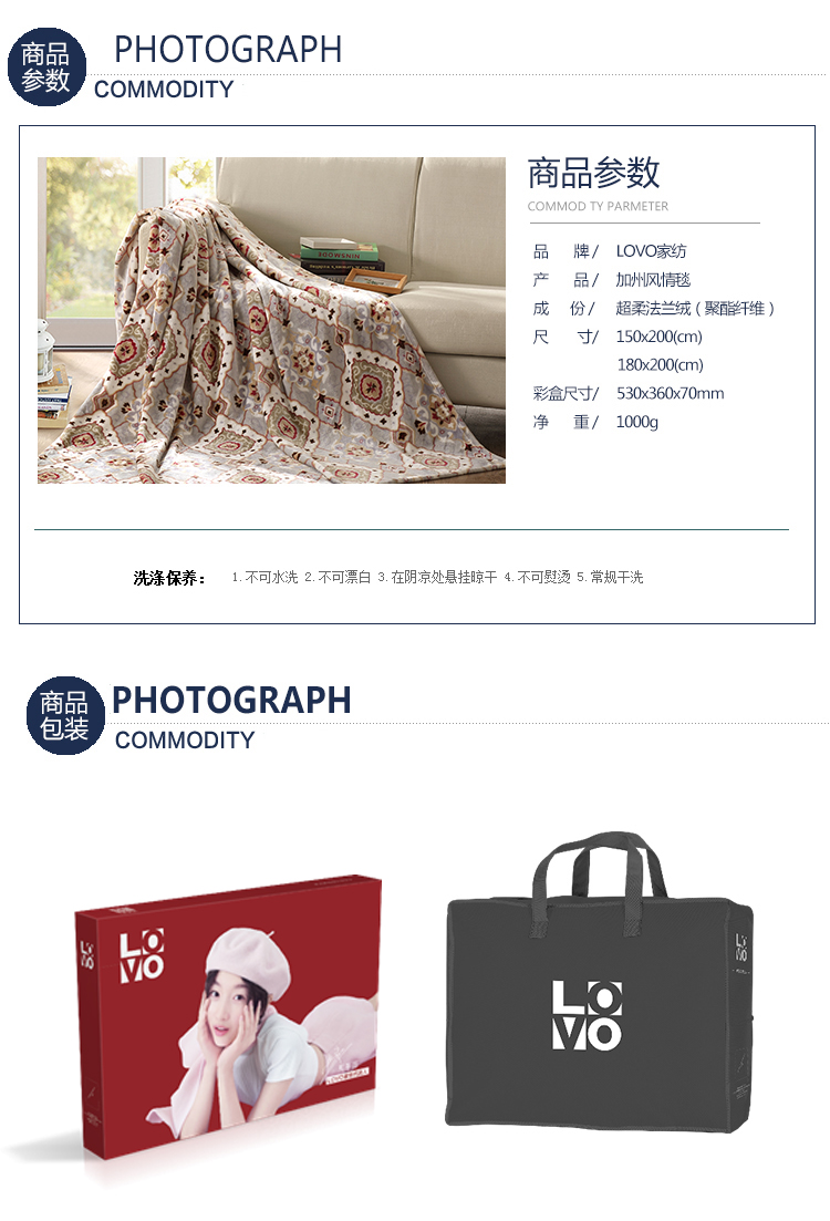 您所在的位置:首页 > 家居日用 >  床上用品 >  毛毯 >  LOVO家纺 加州风情毯VBC1502-8 规格150x200(cm)