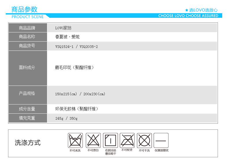 LOVO家纺 春夏被爱妮VSQ2035-2 规格 200x230(cm)