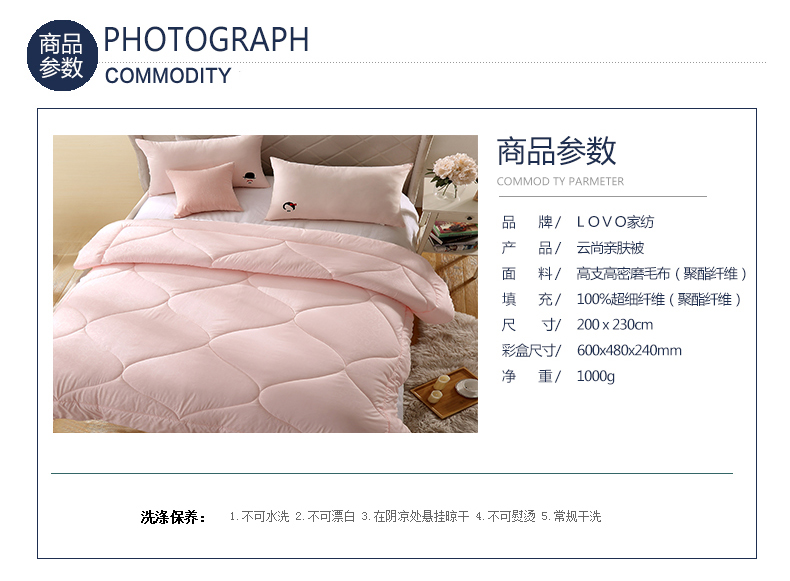 您所在的位置:首页 > 家居日用 >  床上用品 >  被子 >  LOVO家纺 云尚亲肤被VQF2010-1 规格 200x230cm