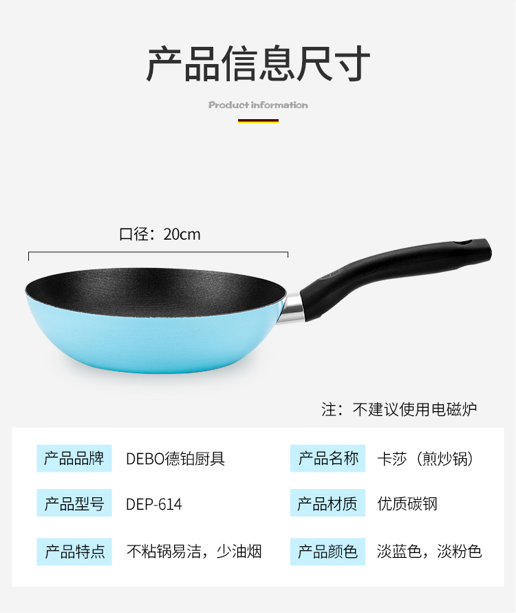 德国Debo 德铂卡莎平底锅不粘煎锅燃气电磁炉通用20cm