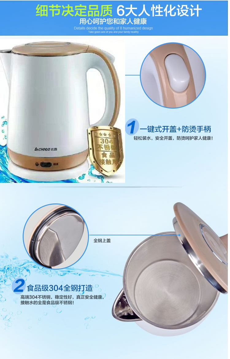 志高电热水壶ZG-18S08 容量1.8L
