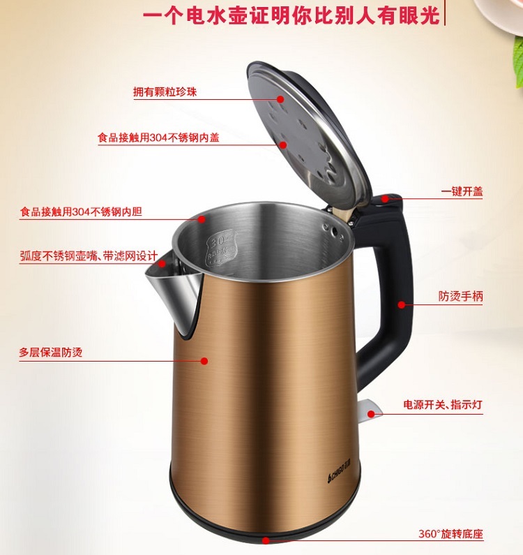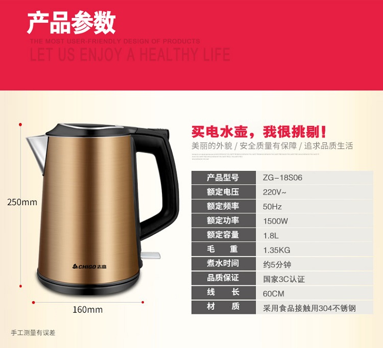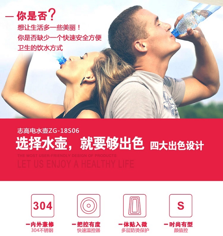 志高电热水壶ZG-18S06 容量1.8L