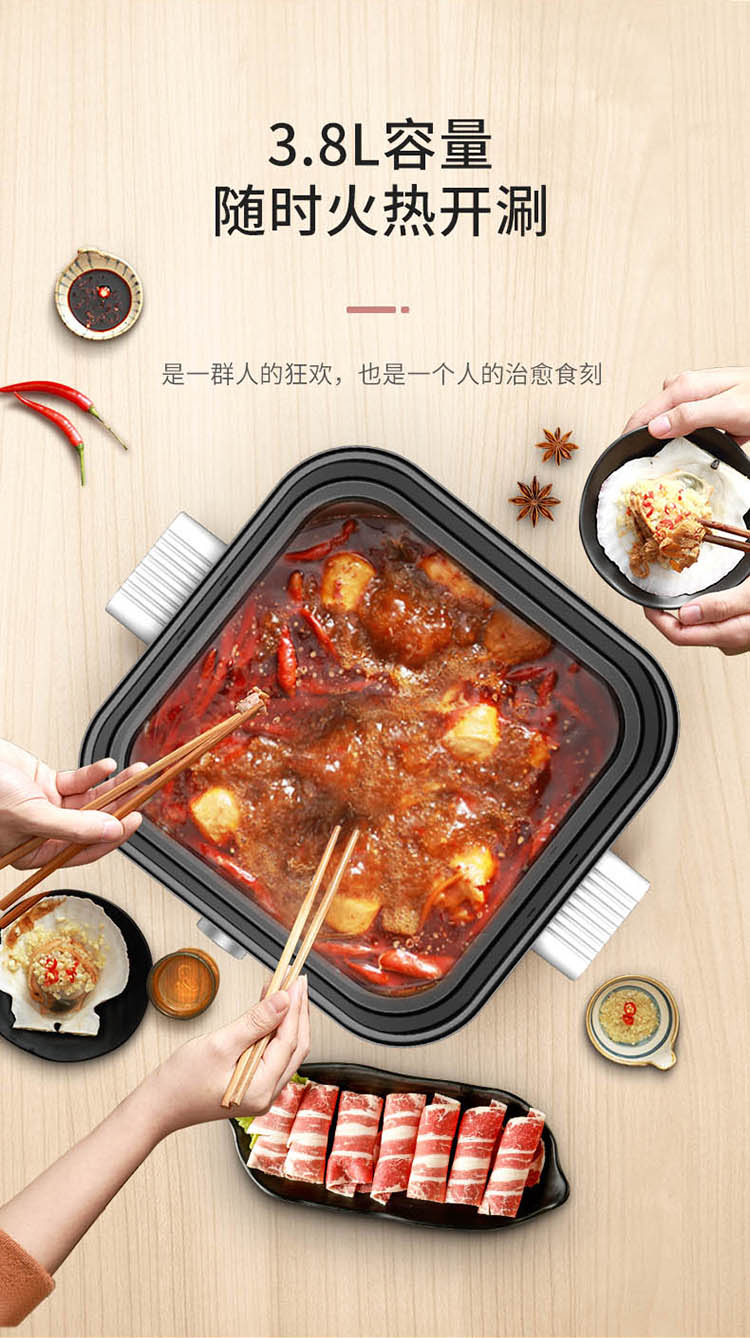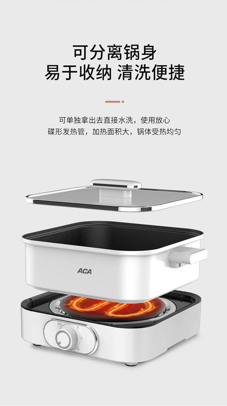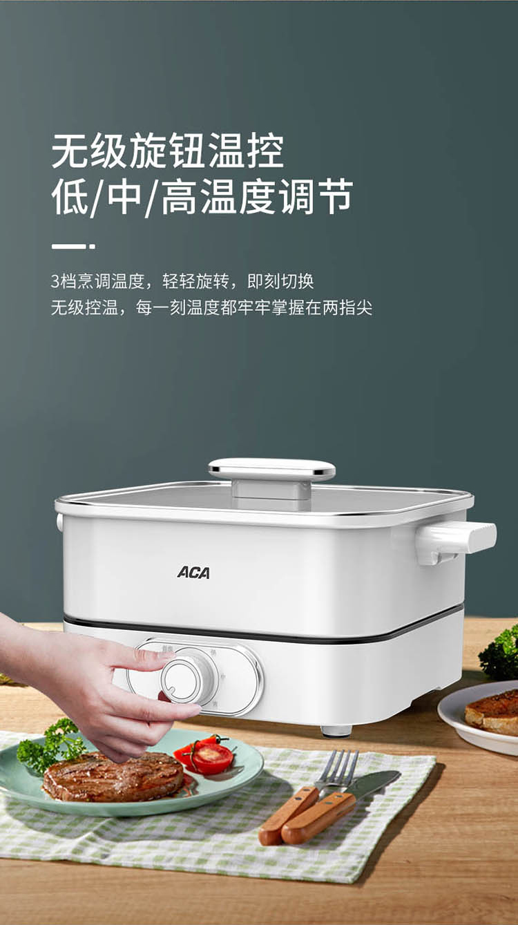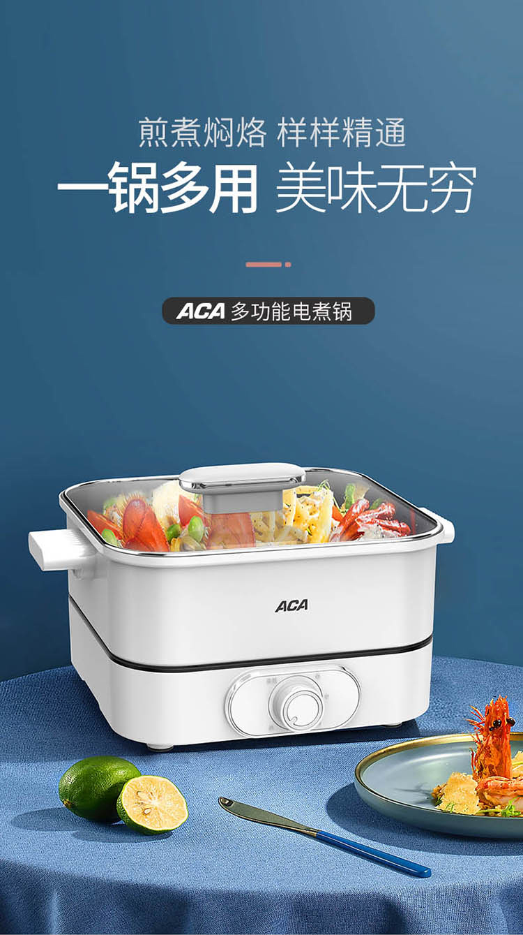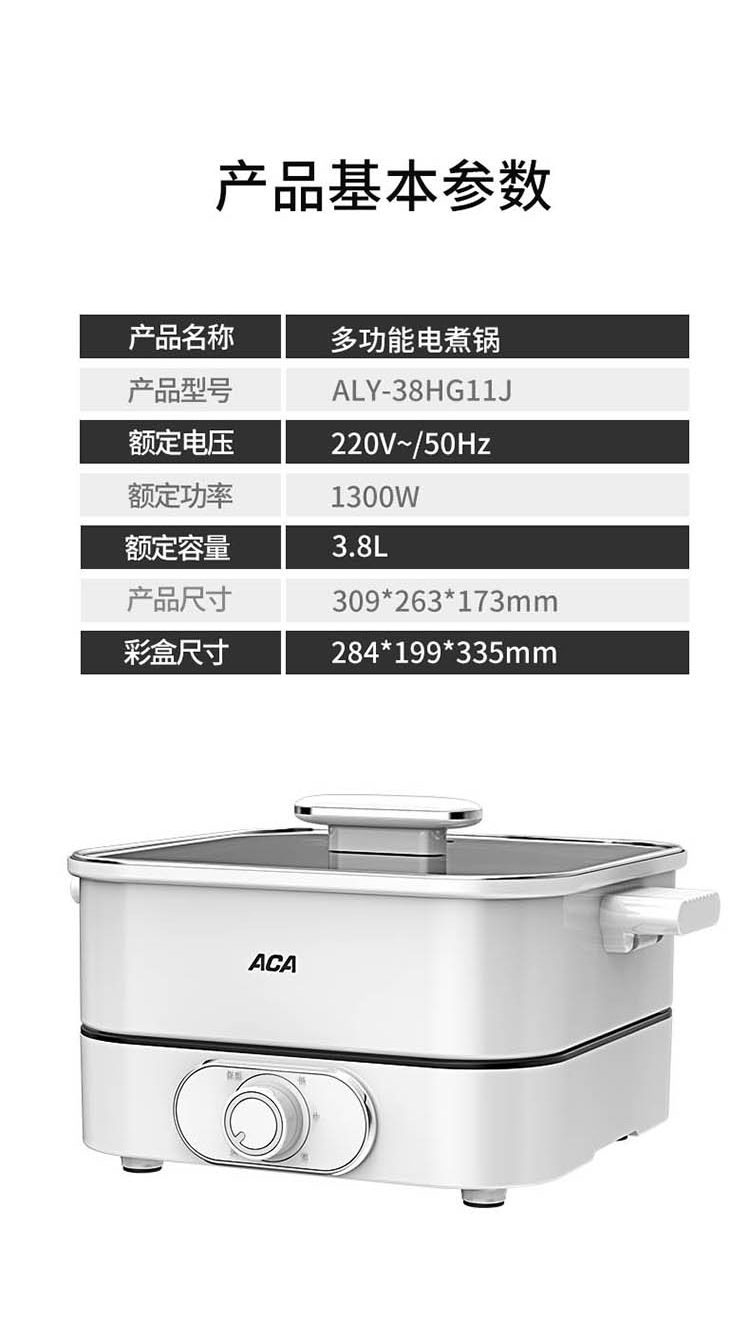 【授权商品】ACA/北美电器 多功能电煮锅ALY-38HG11J电火锅 3.8L大容量