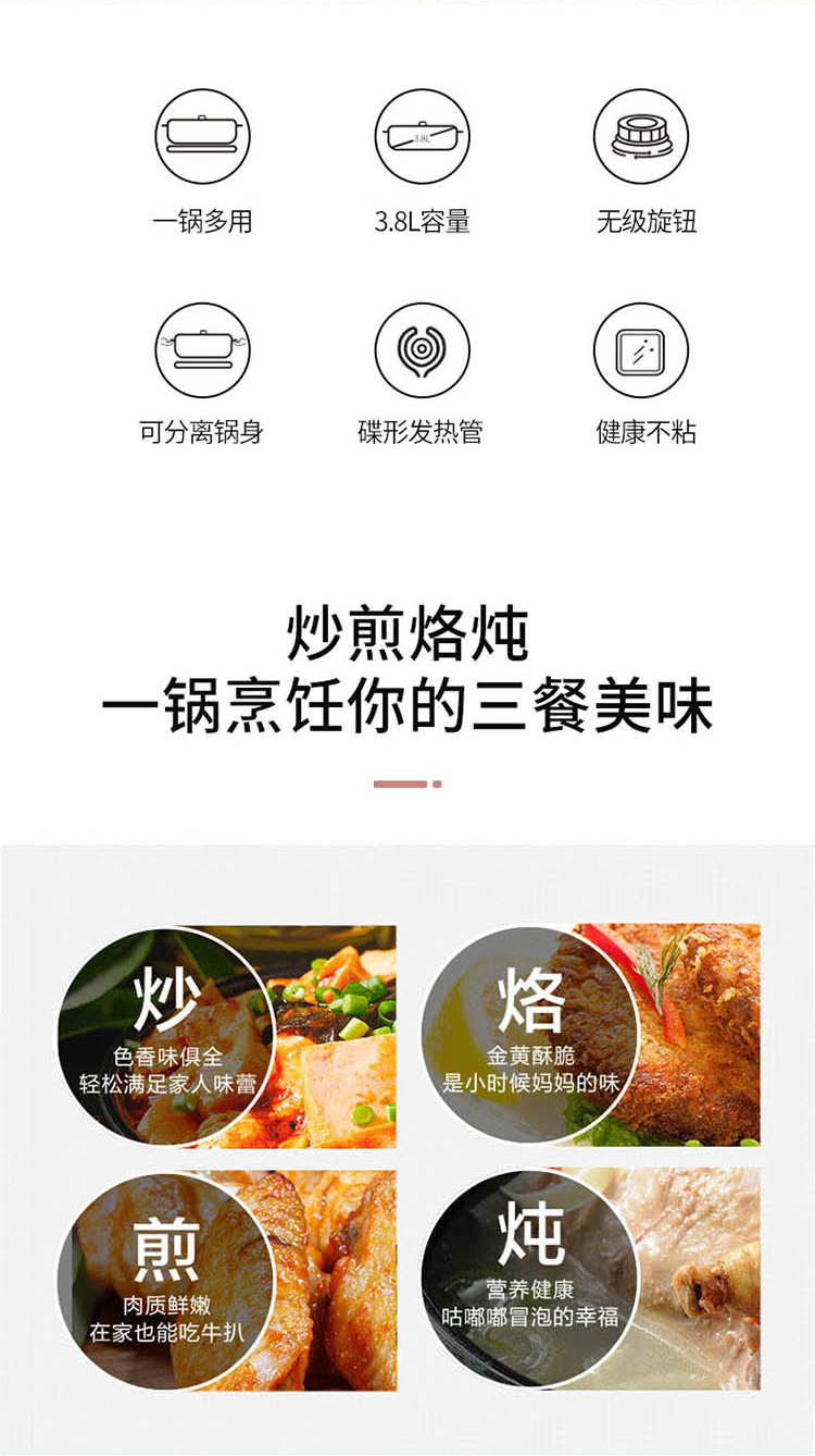 您所在的位置:首页 > 家用电器 >  厨房小电 >  多用途锅 >  【授权商品】ACA/北美电器 多功能电煮锅ALY-38HG11J电火锅 3.8L大容量