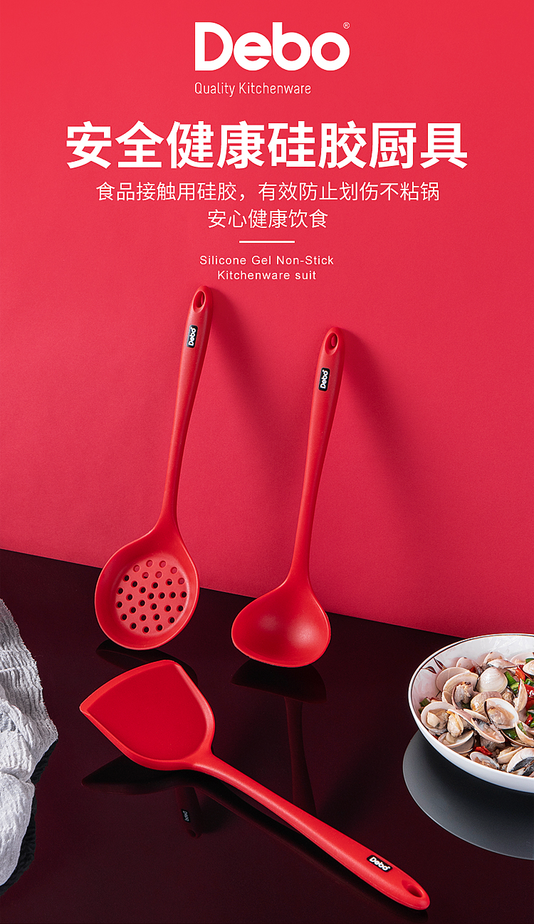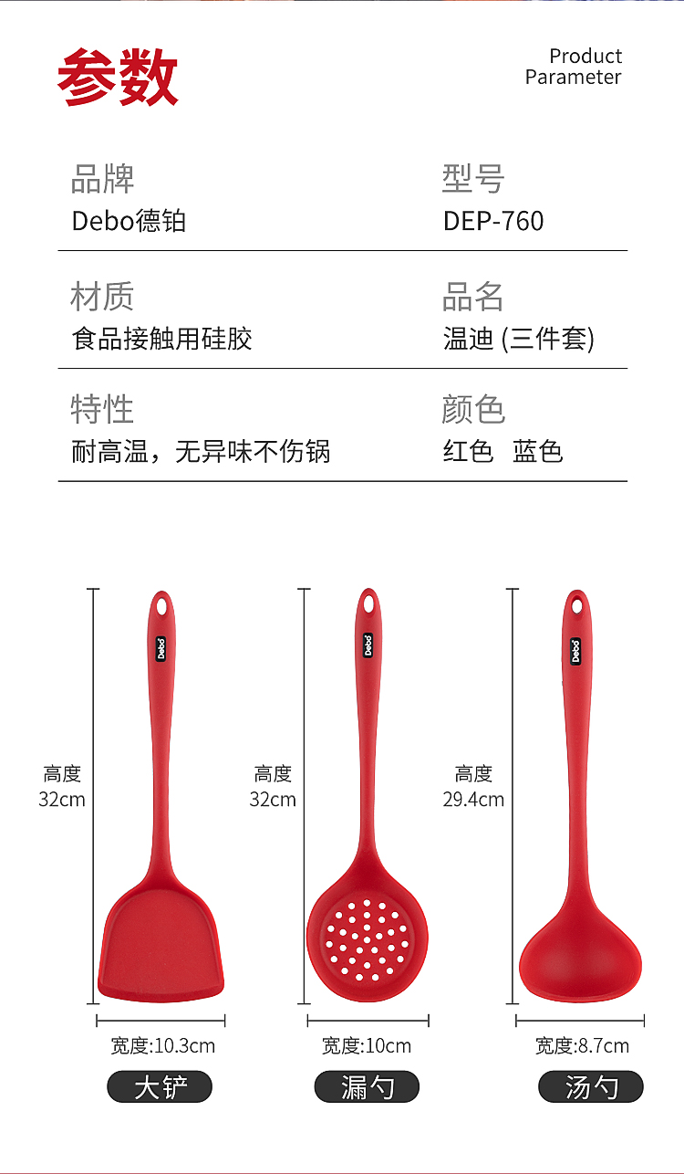德国Debo德铂温迪耐高温硅胶锅铲烹饪家用不粘锅专用3件套 红色