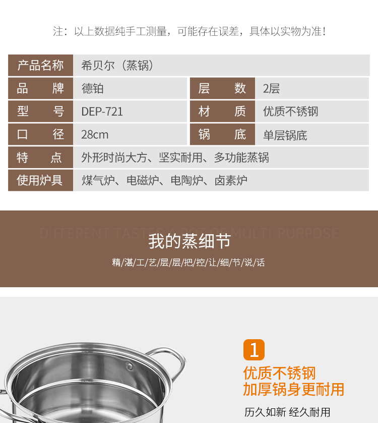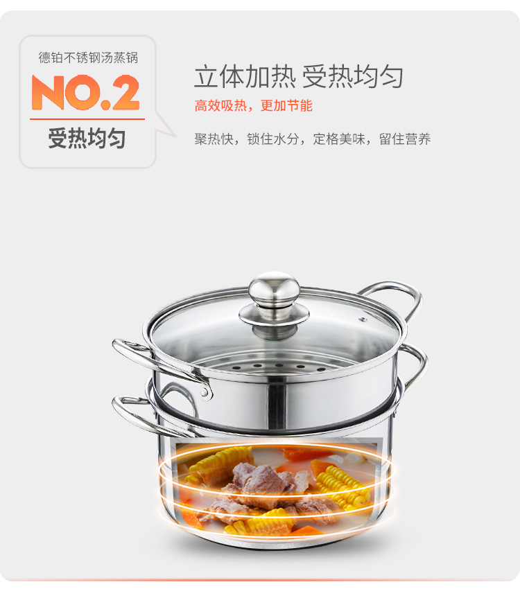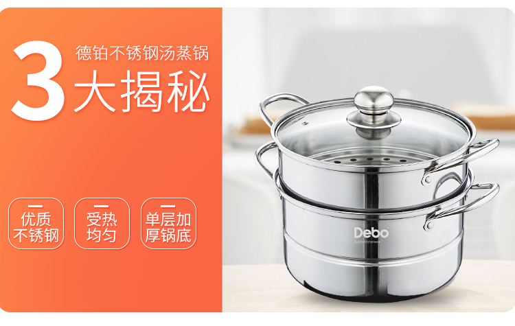 您所在的位置:首页 > 家居日用 >  烹饪锅具 >  蒸锅 >  德国Debo德铂希贝尔28cm双层蒸锅可视锅盖燃气电磁炉通用