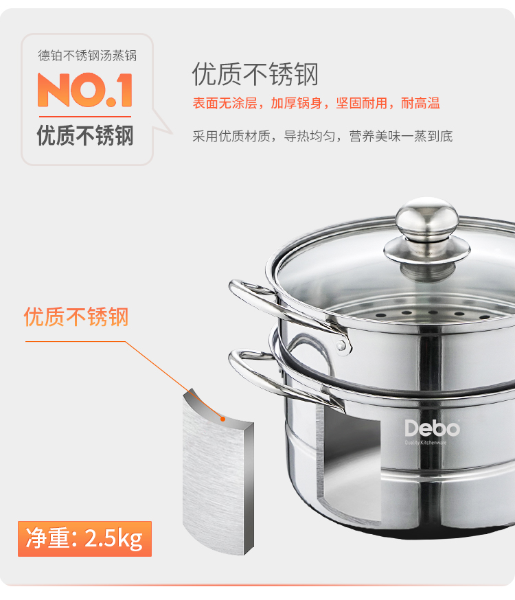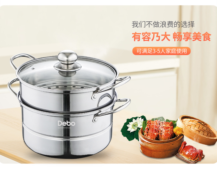 德国Debo德铂希贝尔28cm双层蒸锅可视锅盖燃气电磁炉通用