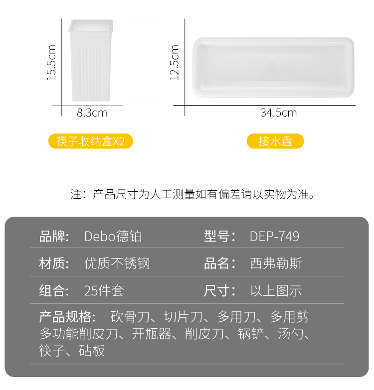 德国Debo德铂西弗勒斯刀具套装不锈钢厨房工具组合25件套