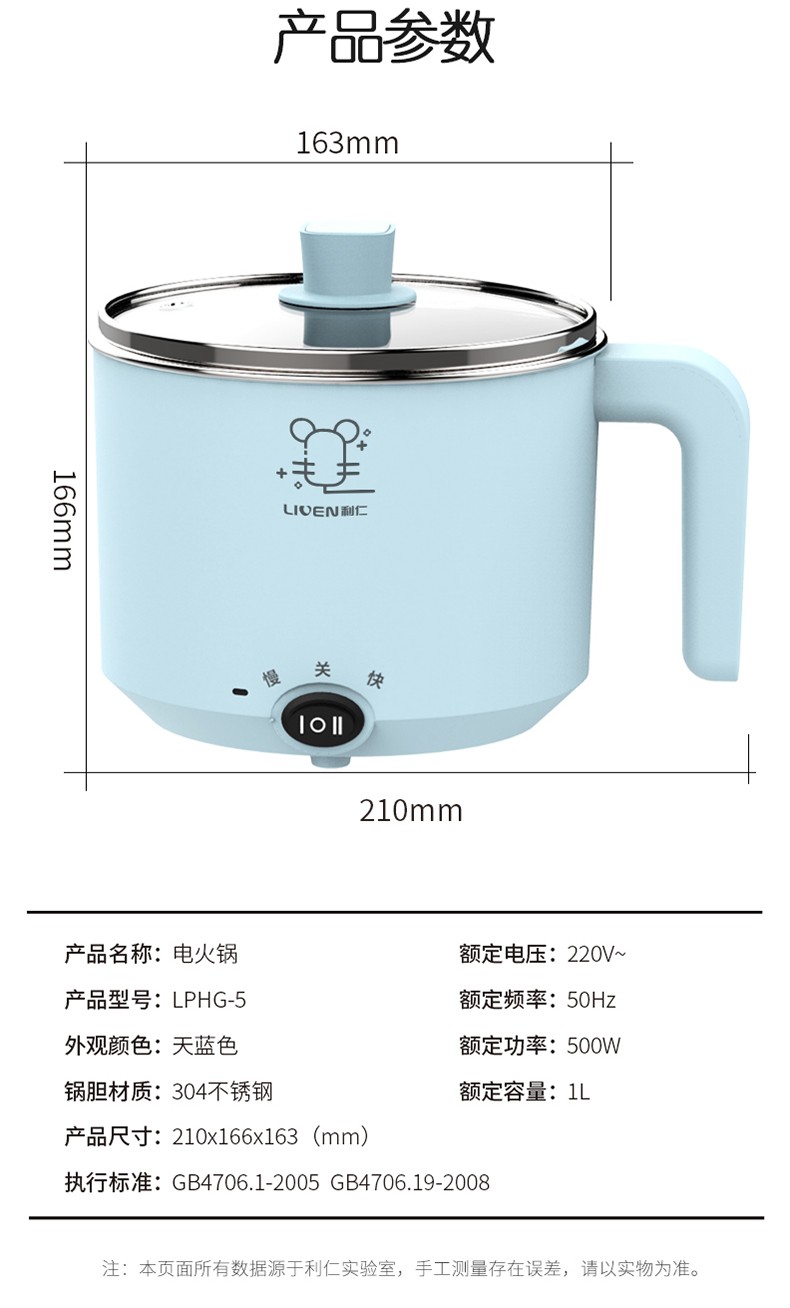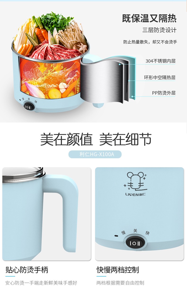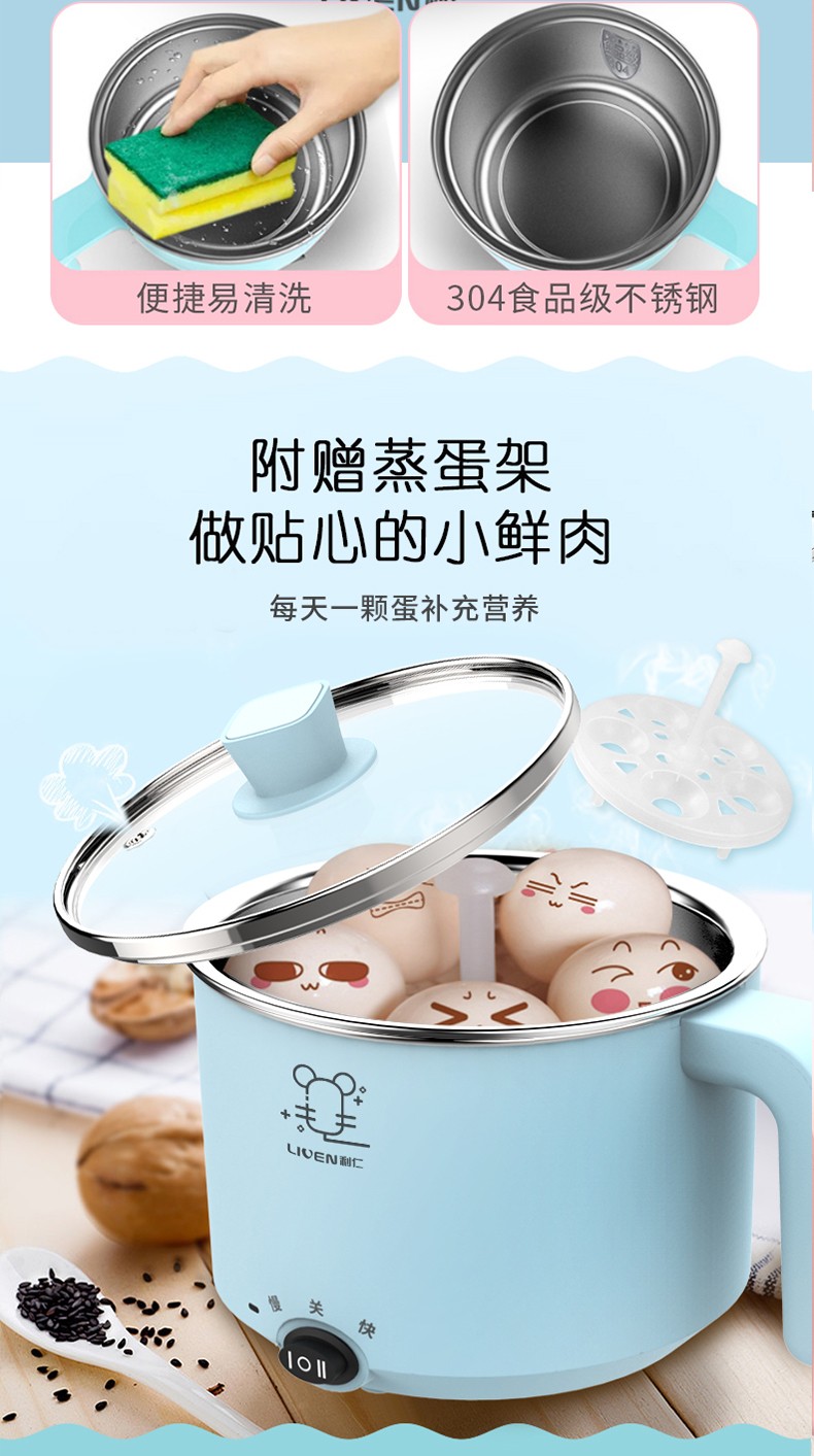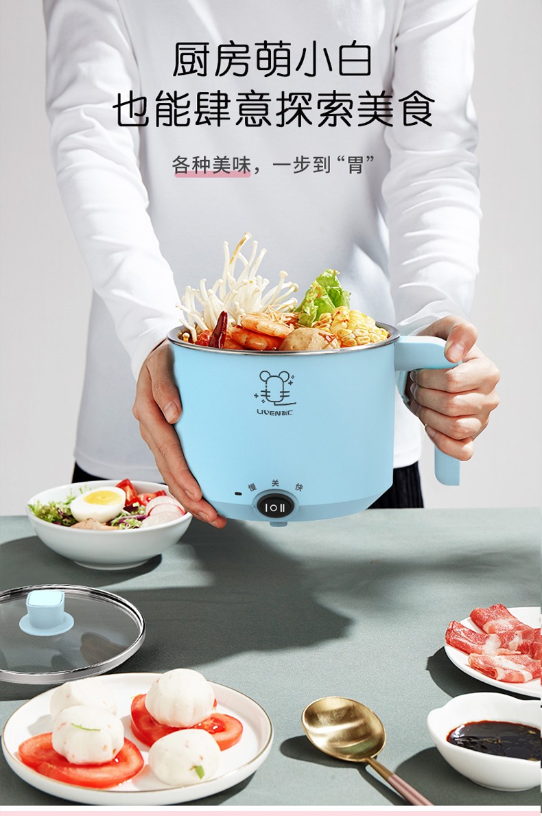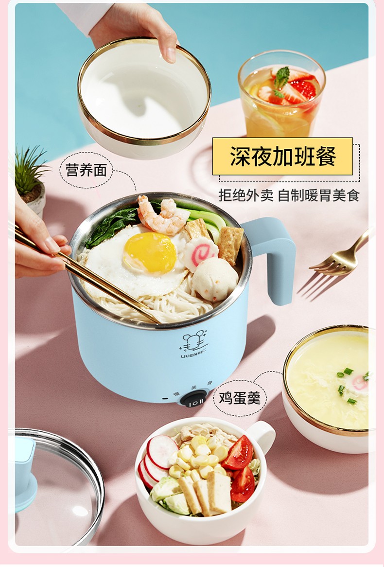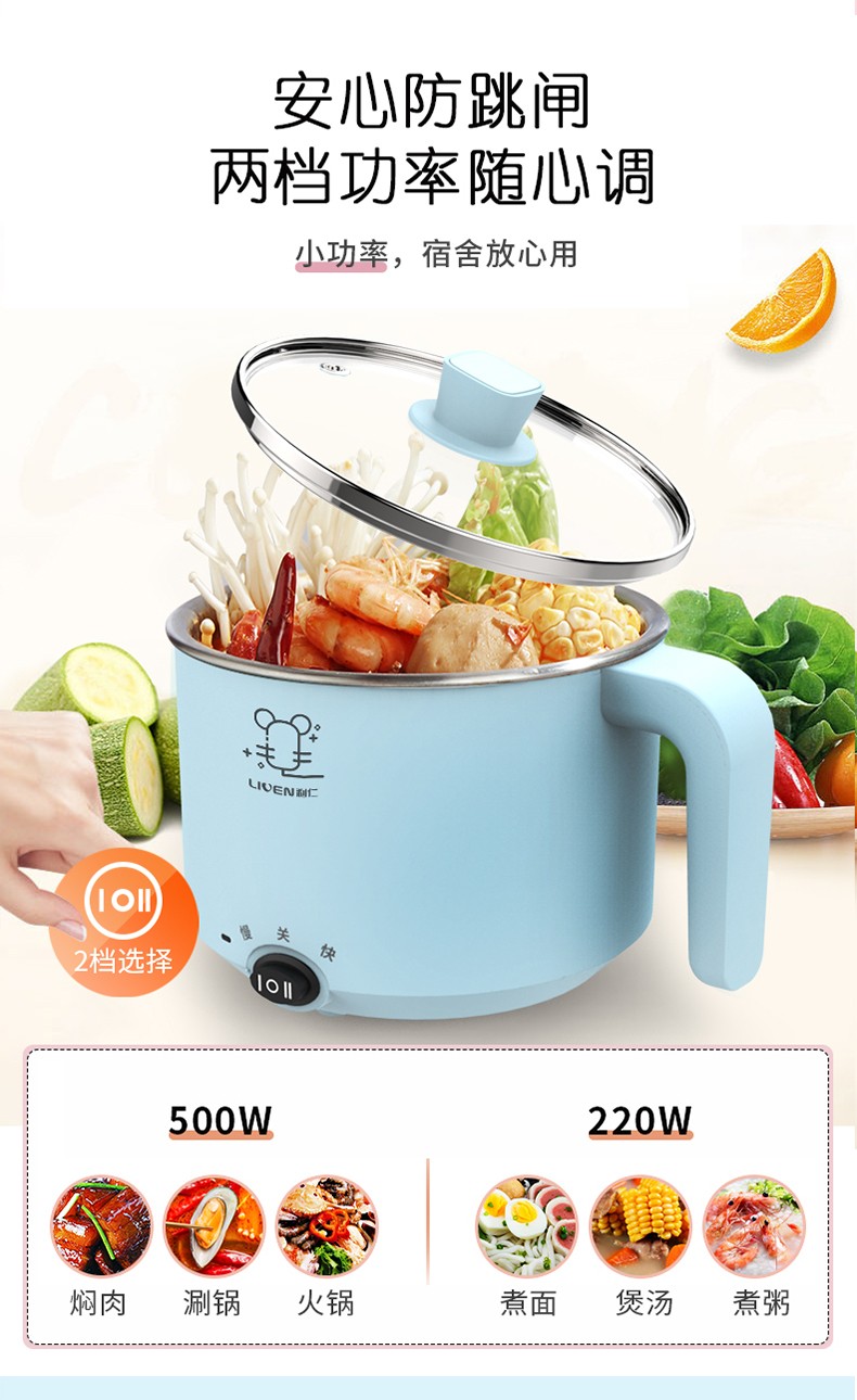 利仁电煮锅1L小电锅 多功能炒煮电热锅迷你电热杯学生宿舍锅煮面电火锅LPHG-5 蓝色LPHG-5