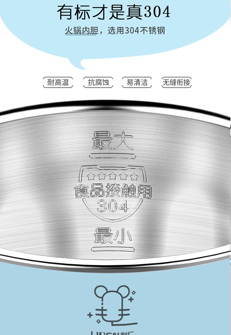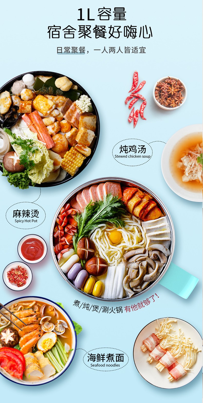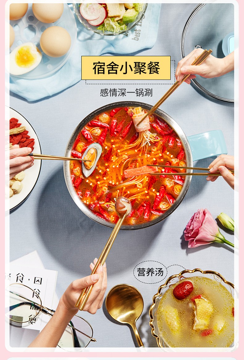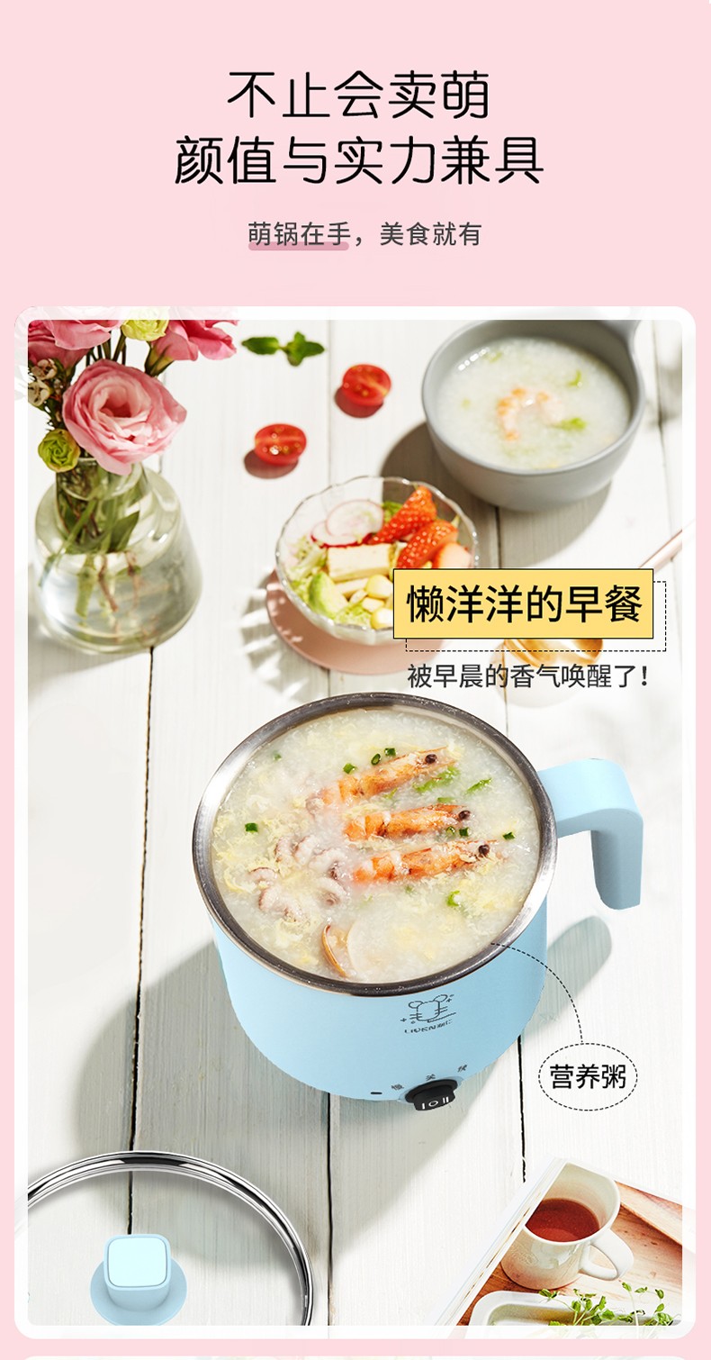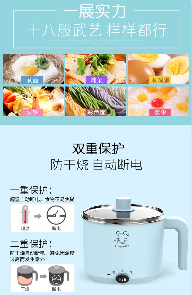 利仁电煮锅1L小电锅 多功能炒煮电热锅迷你电热杯学生宿舍锅煮面电火锅LPHG-5 蓝色LPHG-5