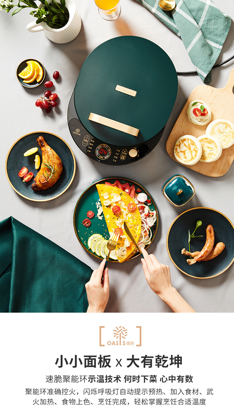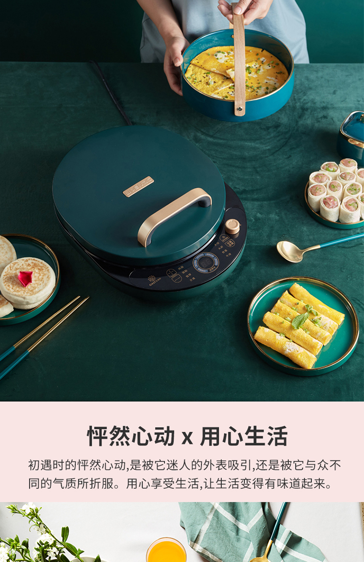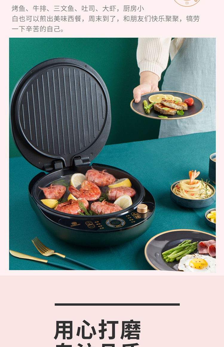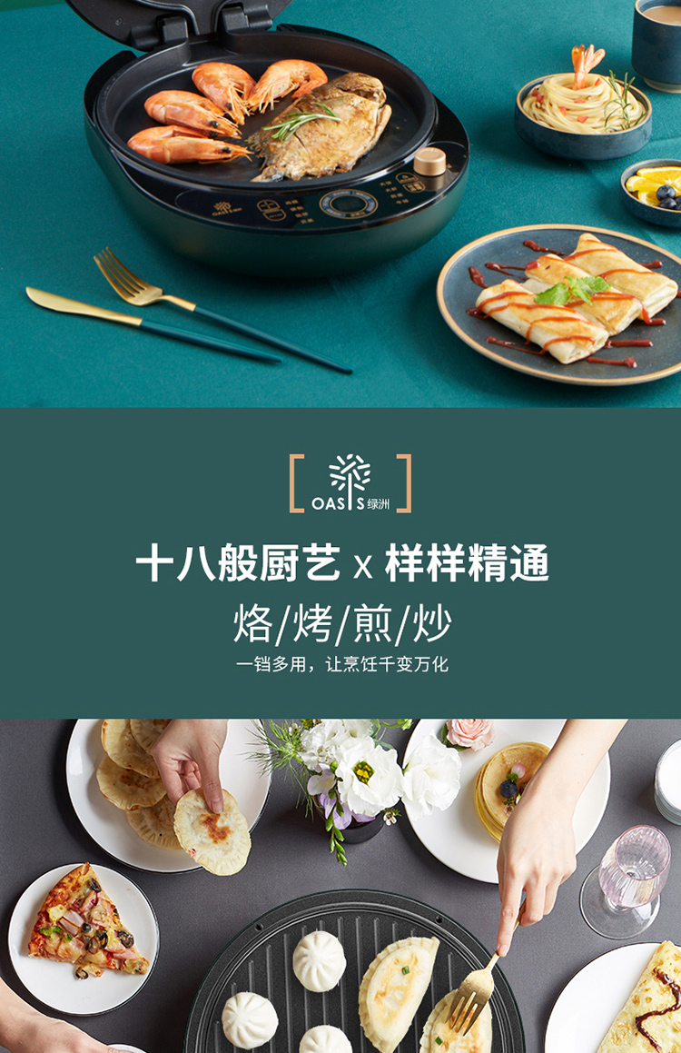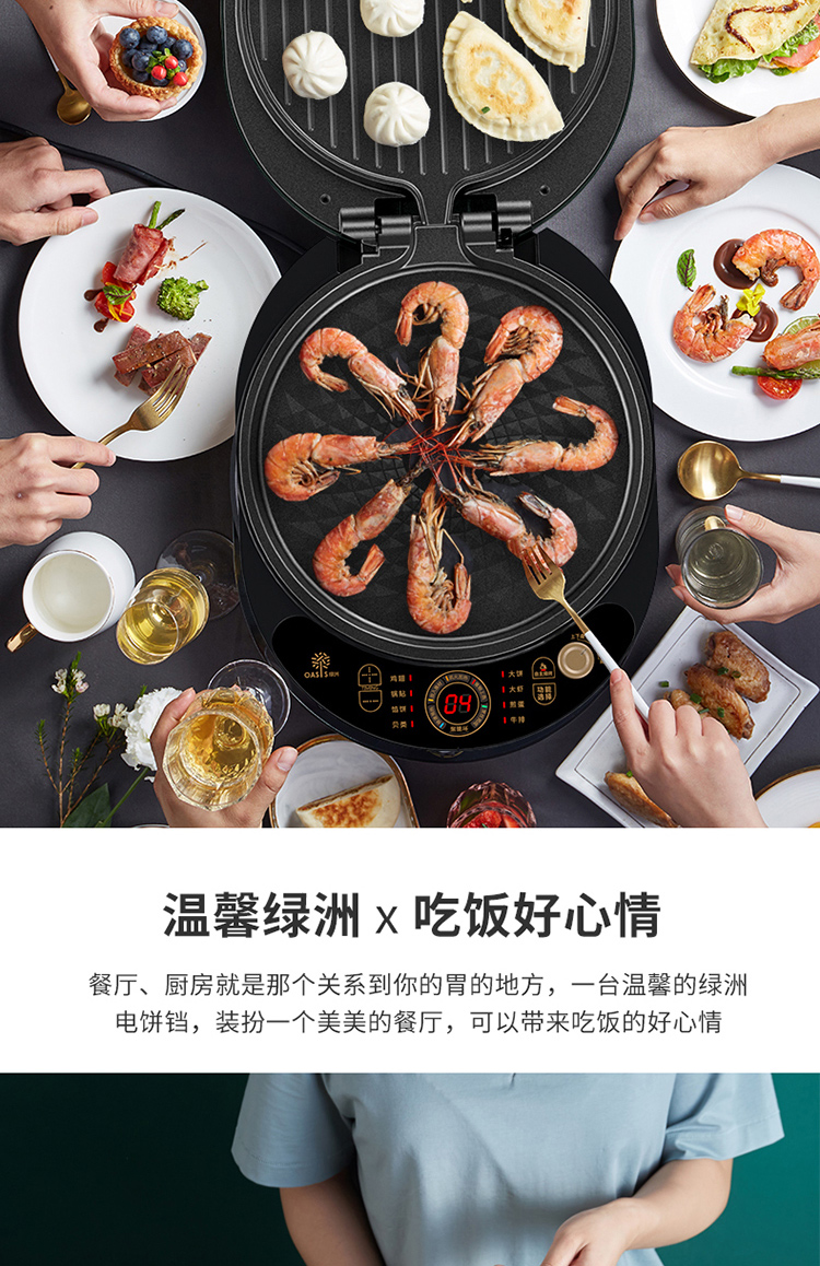 利仁电饼铛网红料理锅家用双面加热可拆洗涮烤一体烙煎饼锅绿洲G1