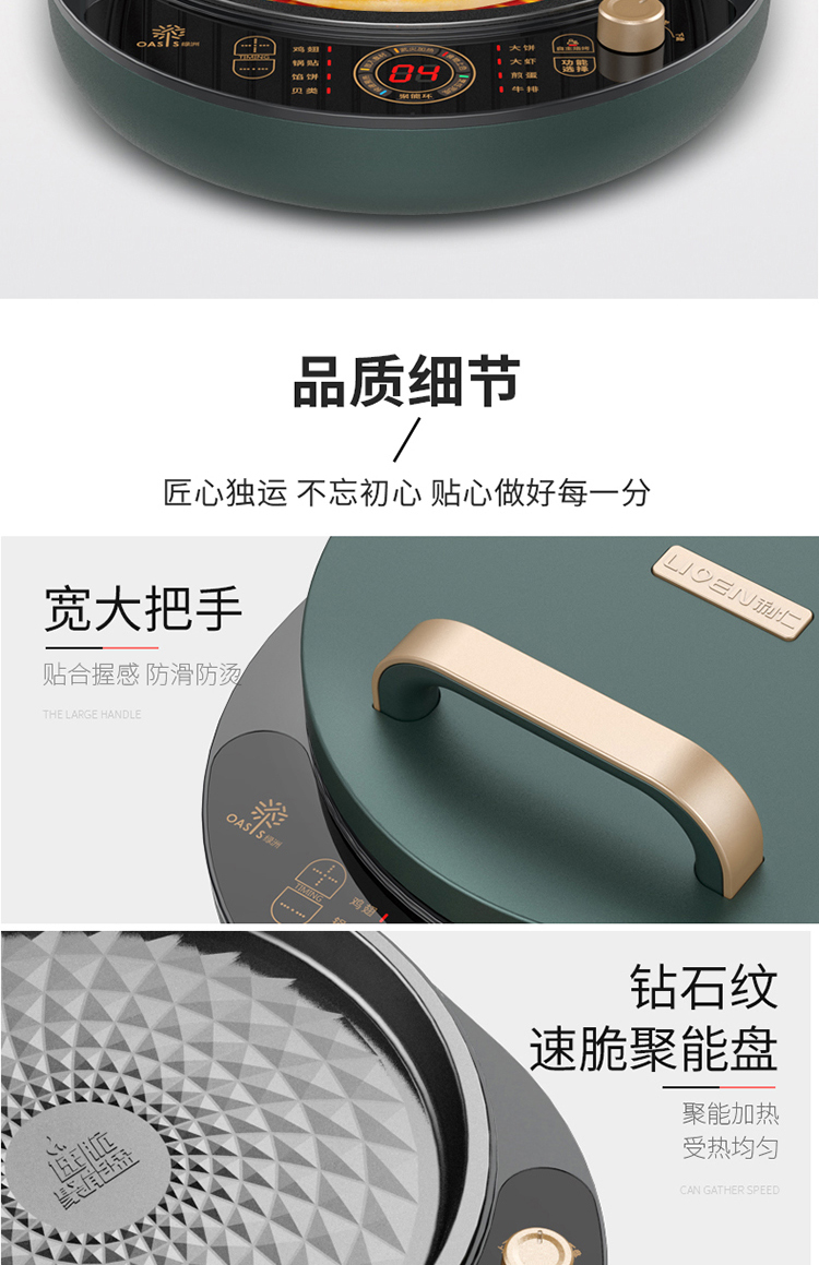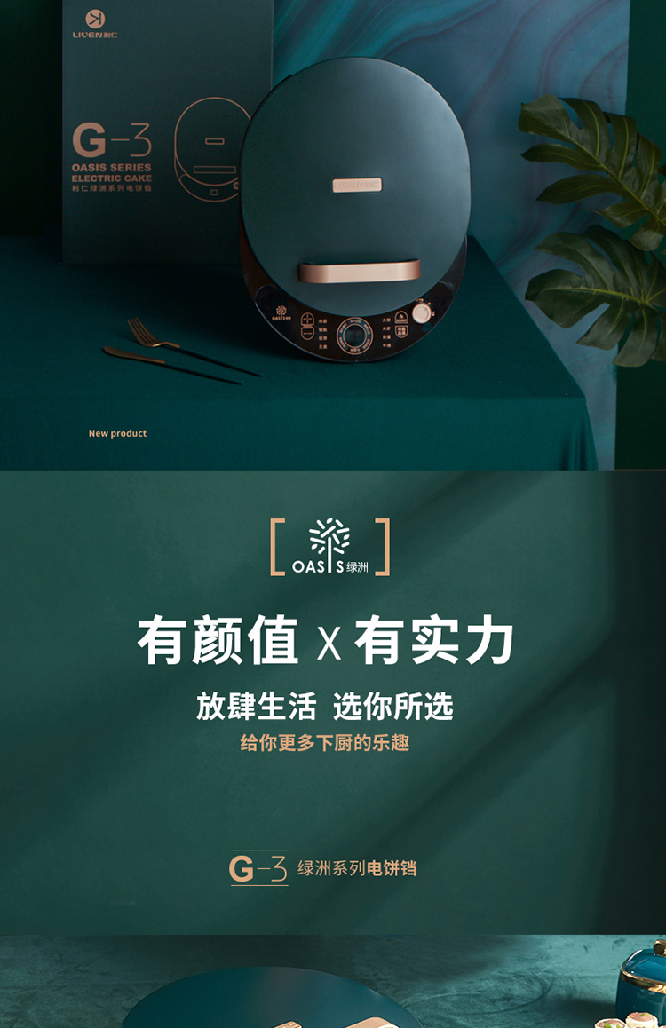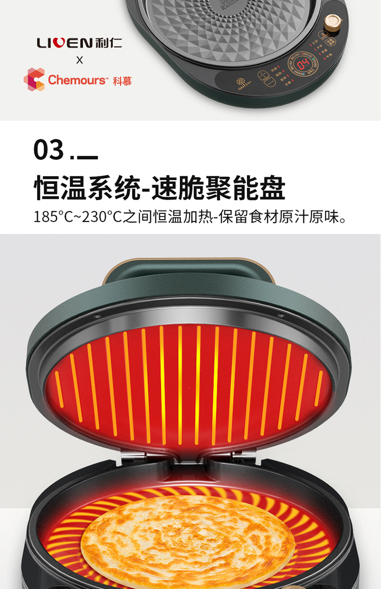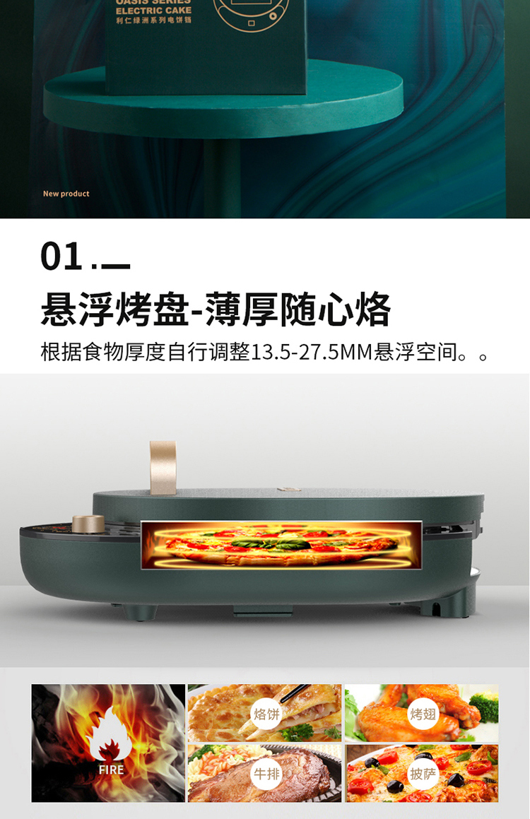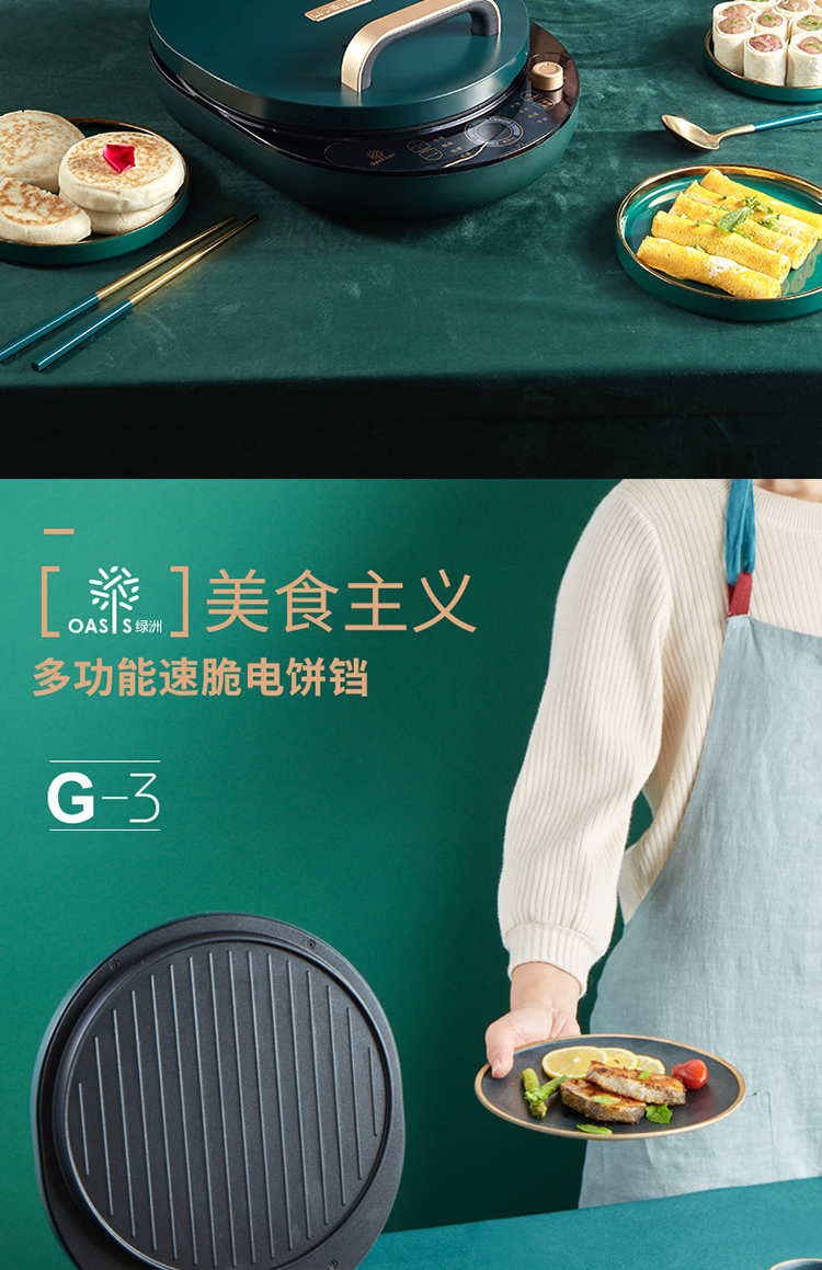 利仁电饼铛网红料理锅家用双面加热可拆洗涮烤一体烙煎饼锅绿洲G1