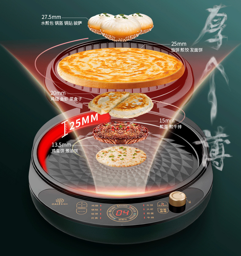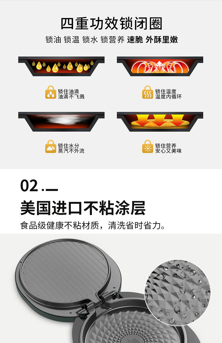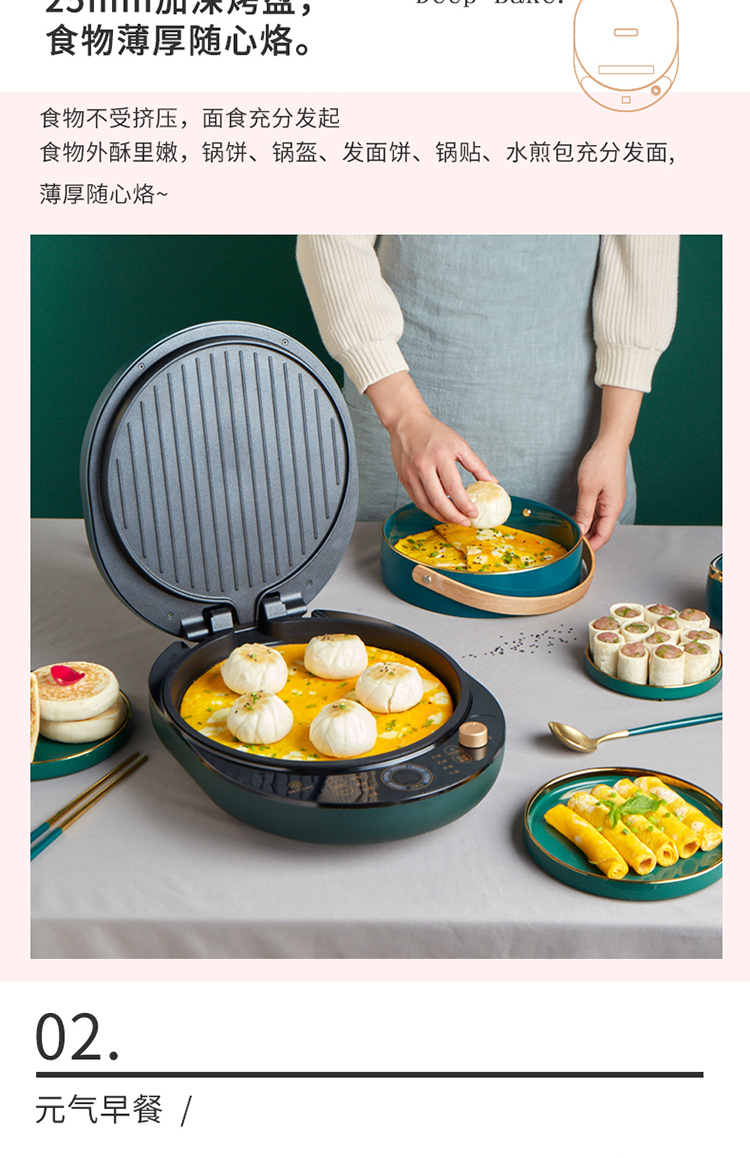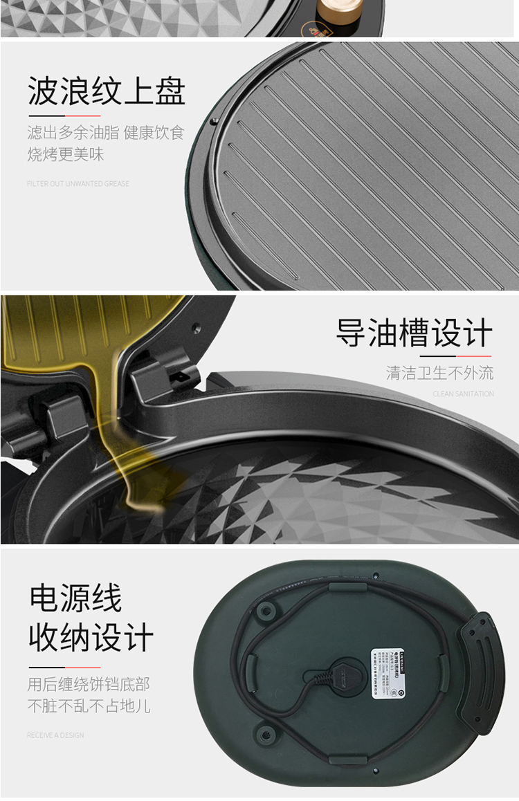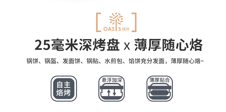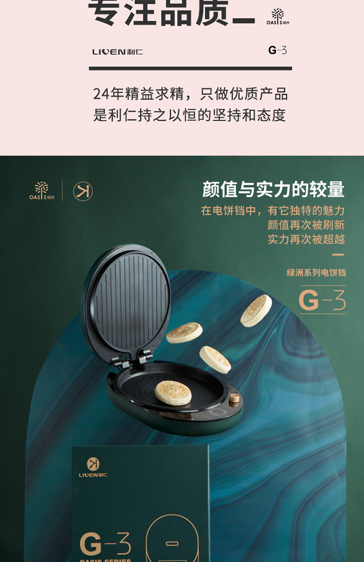 利仁电饼铛网红料理锅家用双面加热可拆洗涮烤一体烙煎饼锅绿洲G1