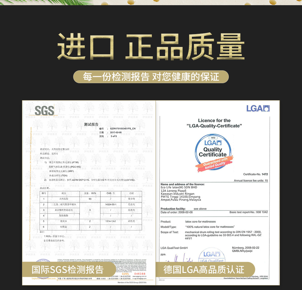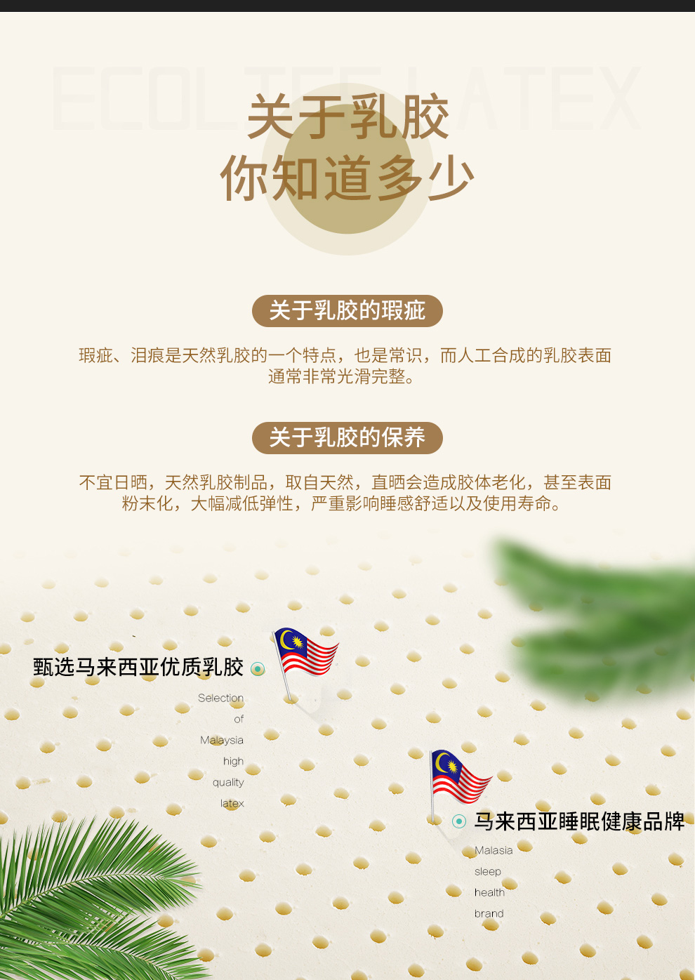 马来西亚ecolifelatex伊珂莱芙进口乳胶床垫DM100-15可定制150*200*10cm