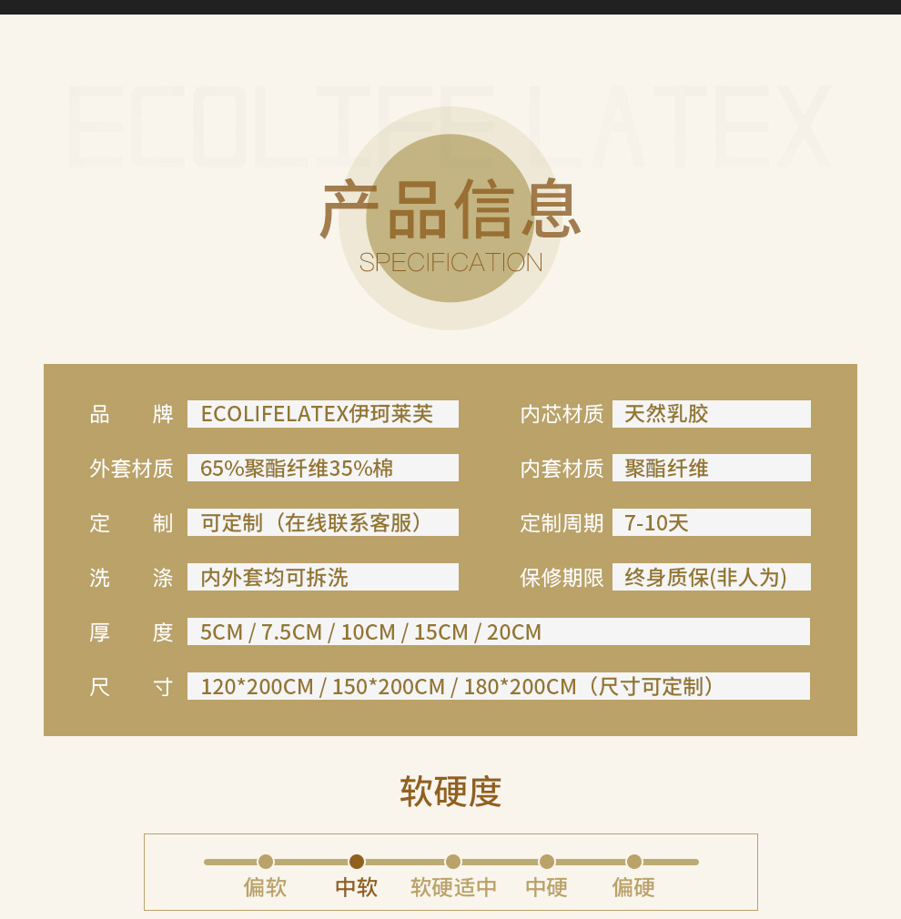 马来西亚ecolifelatex伊珂莱芙进口乳胶床垫DM50-15可定制150*200*5cm