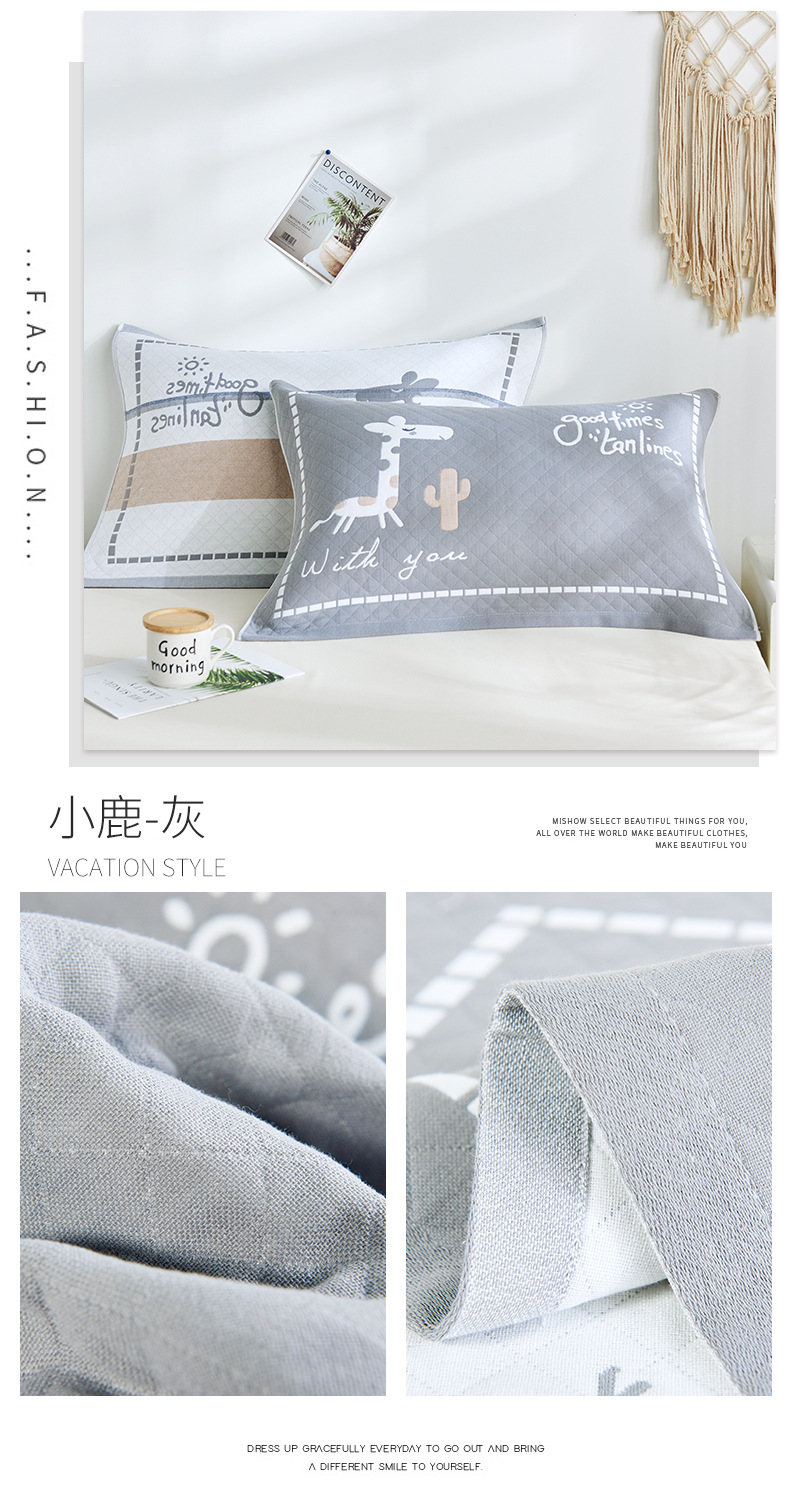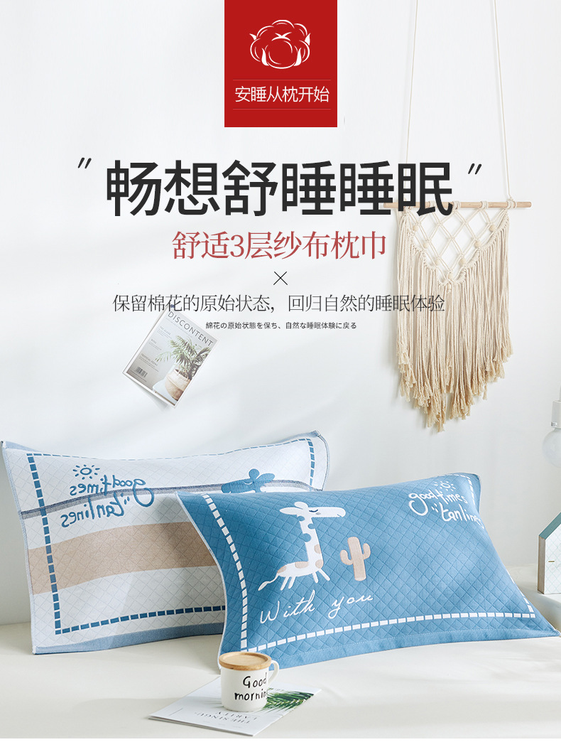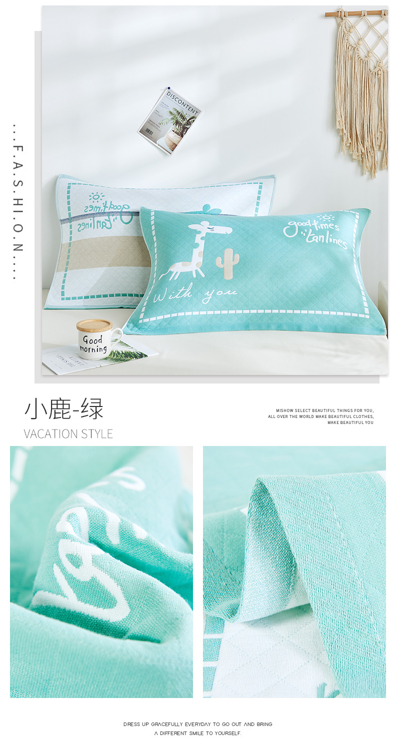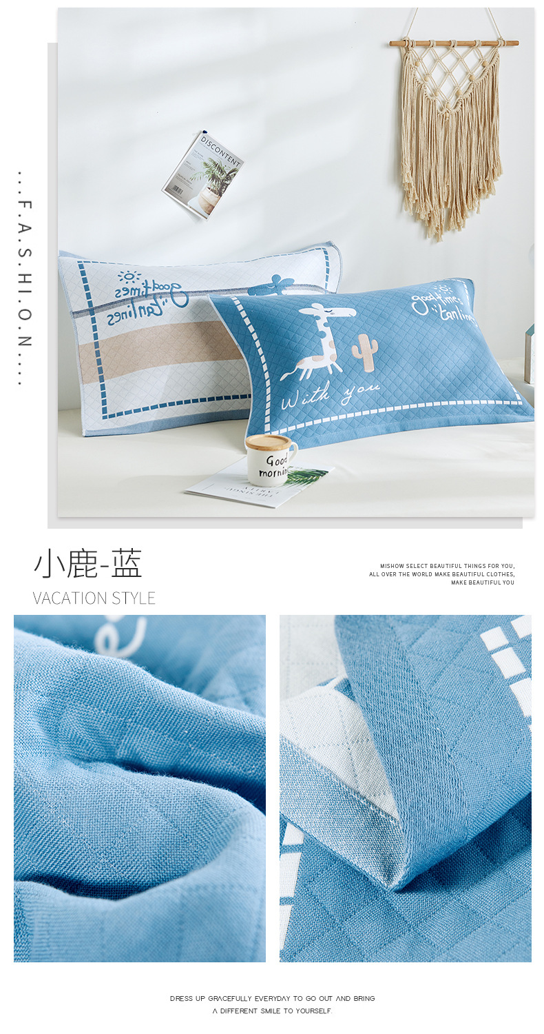 遇洁轩 全棉三层纱夹棉枕巾(一对装)52x80cm(小鹿蓝)