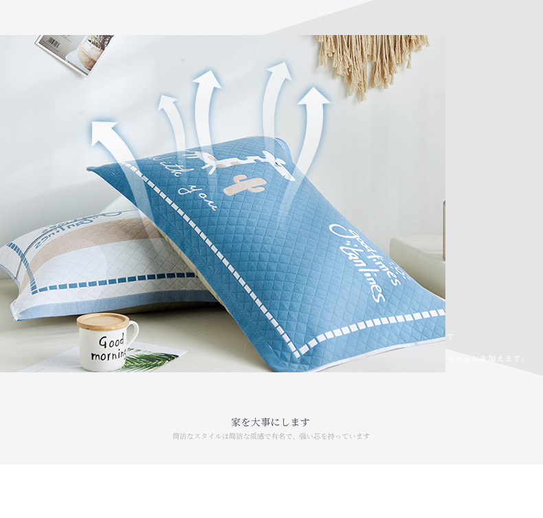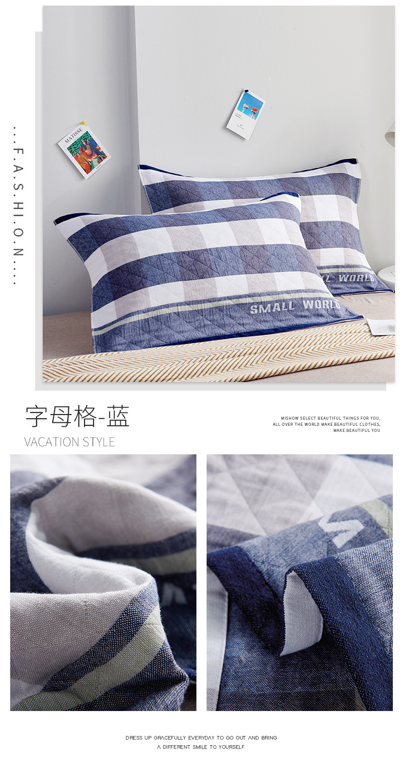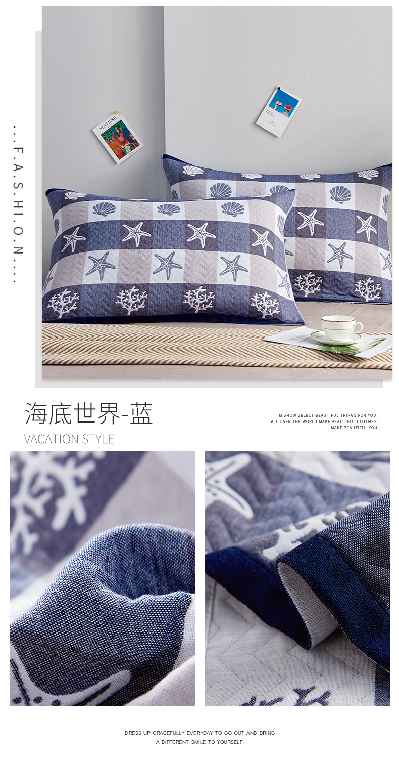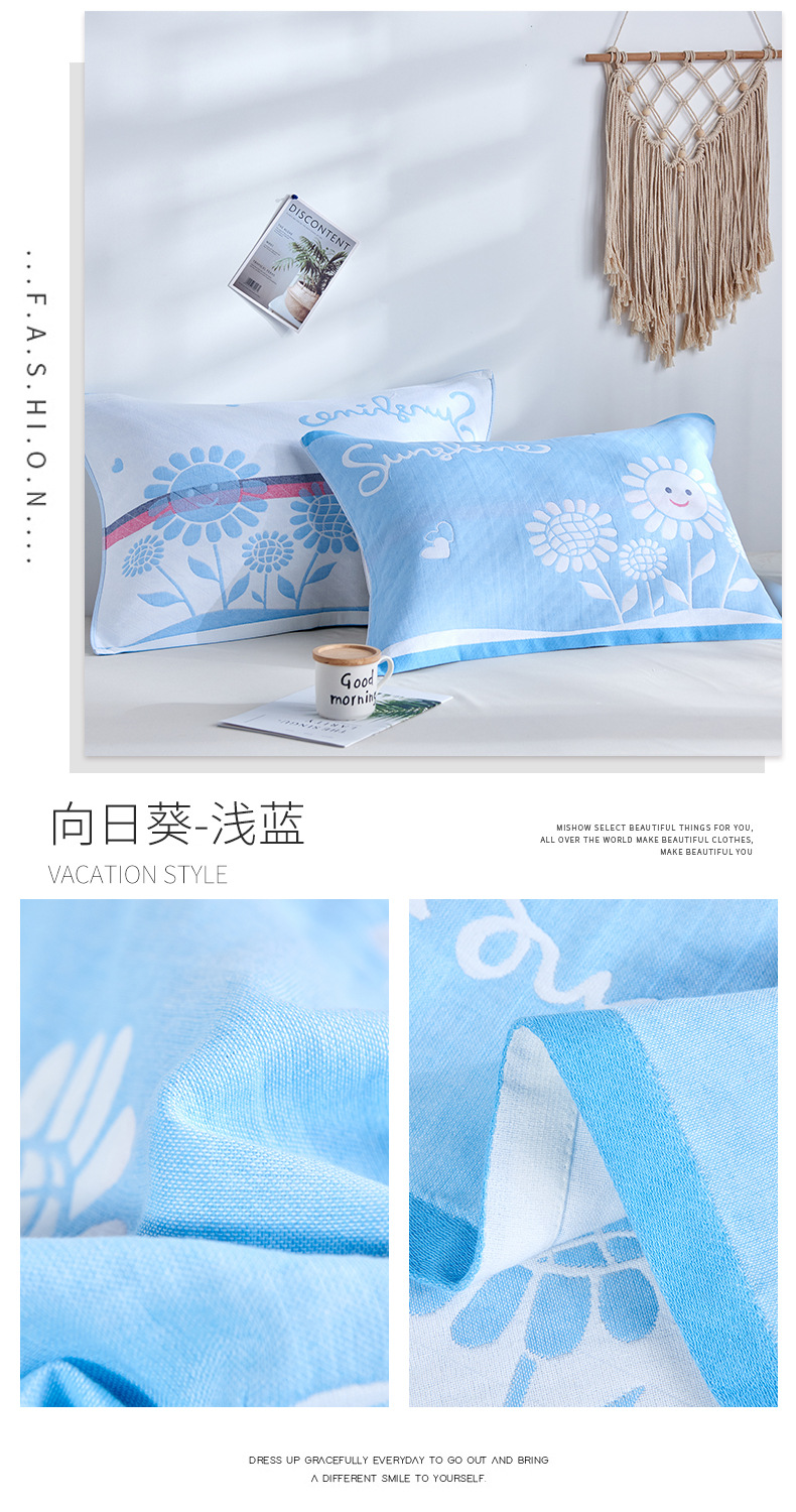 遇洁轩 全棉三层纱夹棉枕巾(一对装)52x80cm(小鹿蓝)