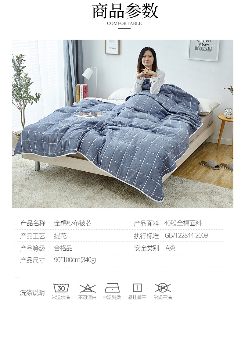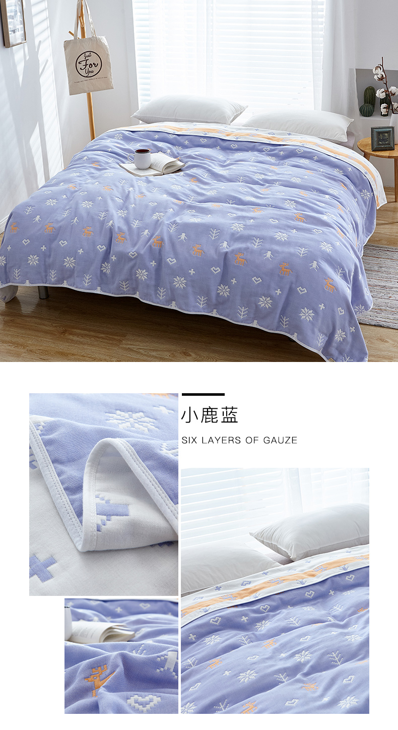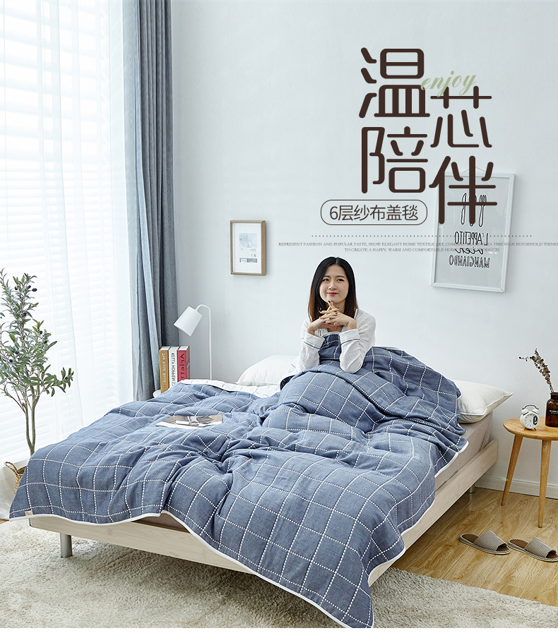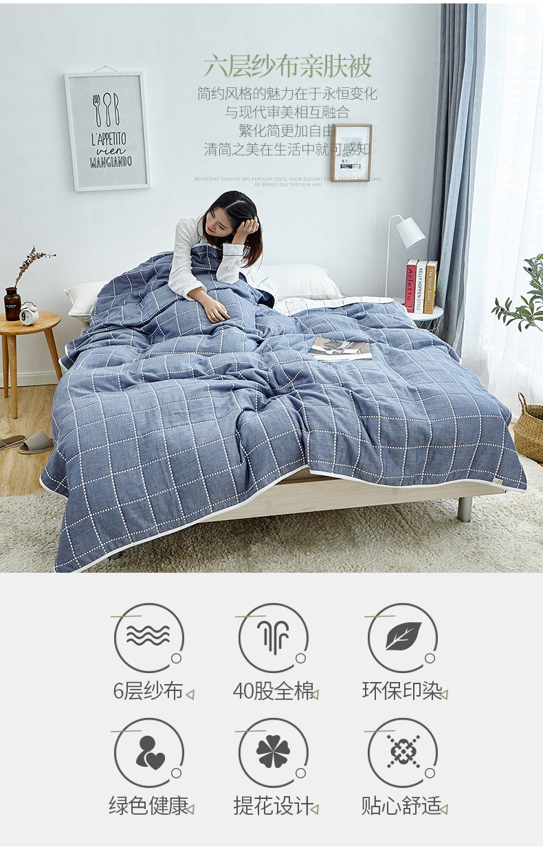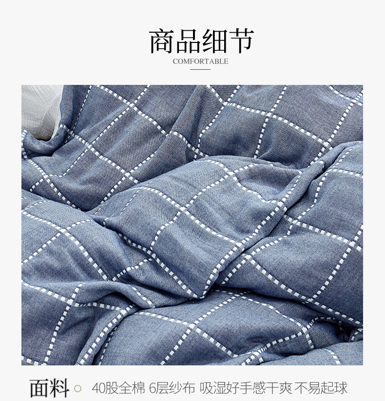 您所在的位置:首页 > 家居日用 >  床上用品 >  被子 >  遇洁轩全棉A类六层纱布毛巾被 午睡被 90x100cm(格子蓝)