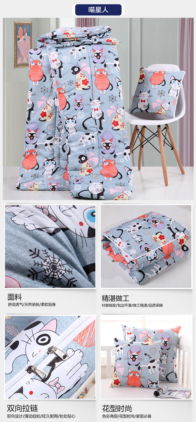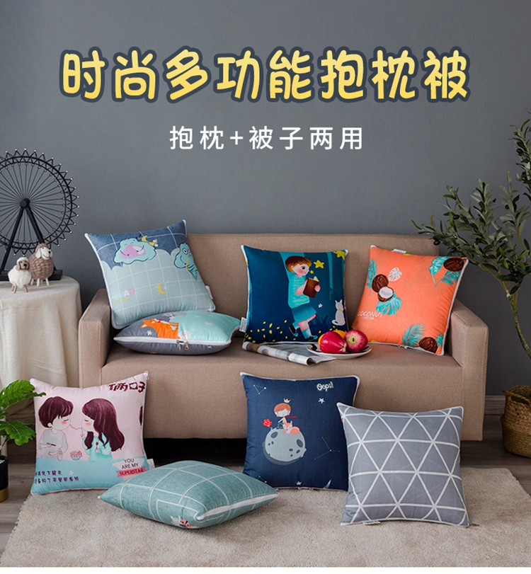 遇洁轩精梳棉抱枕被 抱枕被子二合一 40x40cm展开105*150 (未来时空)