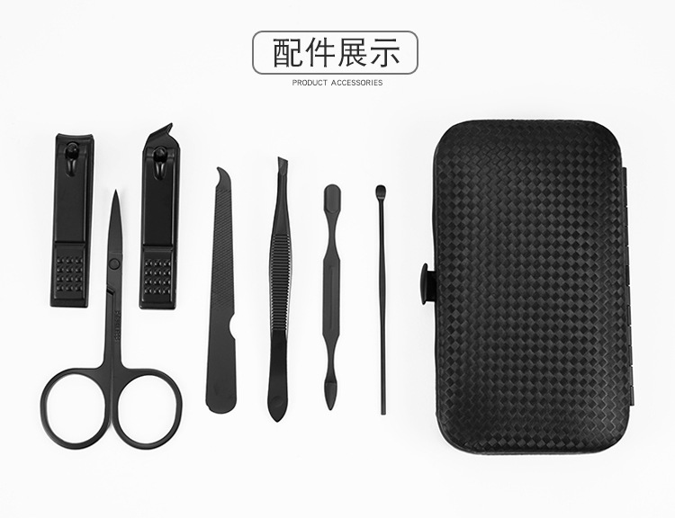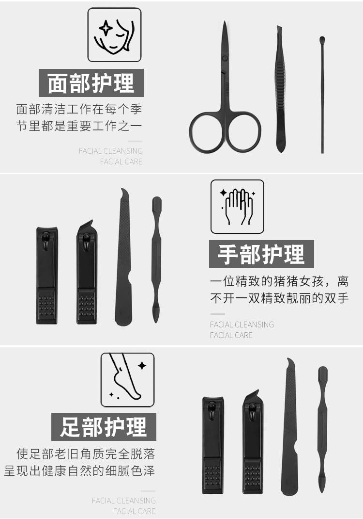 ZUNDUO不锈钢指甲刀套装 7254 修脚钳美容美甲剪全套工具礼品包 黑色拉链包20件套