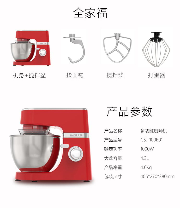 长虹多功能厨师机CSJ-100E01打蛋机和面机搅拌机