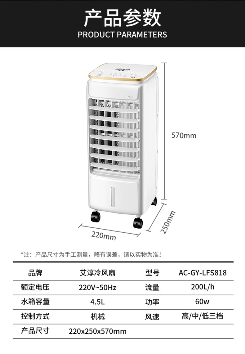 艾淳 (AICHUN)空调扇静音节能冷风机家用水冷风扇单冷型电风扇空气循环扇可移动小型空调AC-GY-LFS818